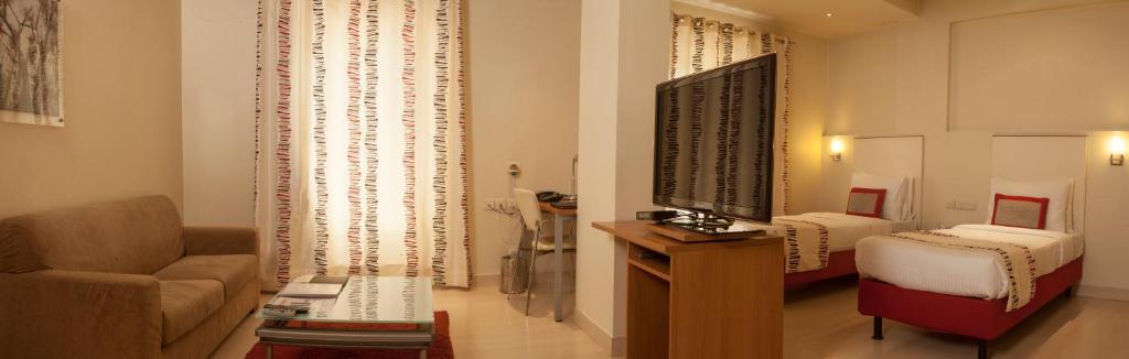 Мы остановились на дворе Авалона в последнюю ночь в Индии, и они сохранили все лучшее до последнего. Этот отель, управляемый японской леди по имени Рика Саваэ, был превосходным. После выхода из хаоса, который является улицами Дели вас встречает небольшой японский двор. Пройдя через стеклянные двери, вы попадаете в атриум, где все номера смотрят вниз во внутреннее святилище отеля. roo s просторны, включая комнату отдыха, спальню и небольшую кухню с холодильником размера фюлль. Ванная комната была вместительной, и вся атмосфера проецировала новизну вместо изношенной обстановки, которую испытывали другие отели по всей Индии. Ресторан был замечательным, и курица Терияки была долгожданным избавлением от бесконечных карри. Персонал был внимательным и дружелюбным, и мисс Савае искренне интересовалась нашим мнением. Я бы настоятельно рекомендовал останавливаться здесь и, хотя это не было 5 звезд, это было близко и, безусловно, намного лучше, чем большинство других 4-звездочных отелей, в которых мы останавливались во время нашей поездки.