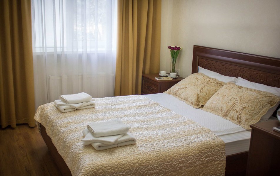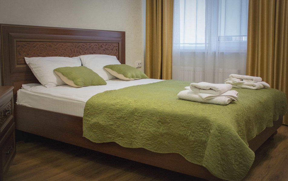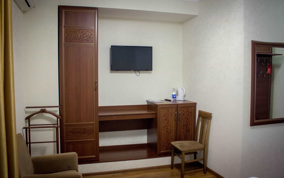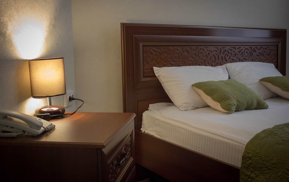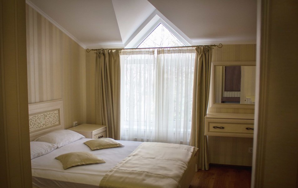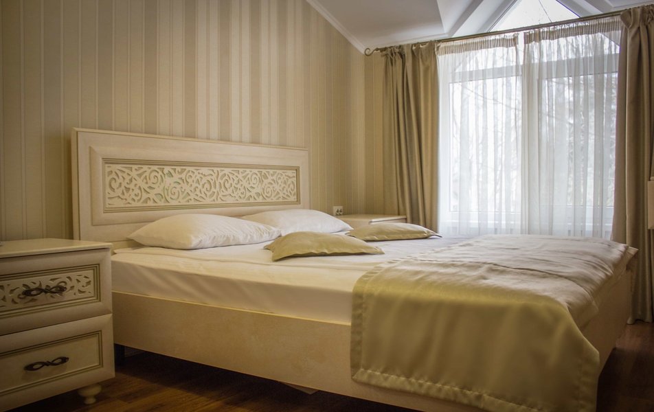 Полулюкс 2-местный 2-комнатный Количество комнат: 1-комнатный Тип номера: Полулюкс Кол-во основных мест: 2 Площадь (кв. м): 24 Мебель: вешалка, диван, зеркало, кровать двуспальная, прикроватные тумбочки, стол, стулья, шкаф Оборудование: кондиционер, телевизор, холодильник, электрочайник Санузел: с душем, туалетные принадлежности, фен Сервис: Wi-Fi бесплатно, смена полотенец, смена постельного белья, уборка номера