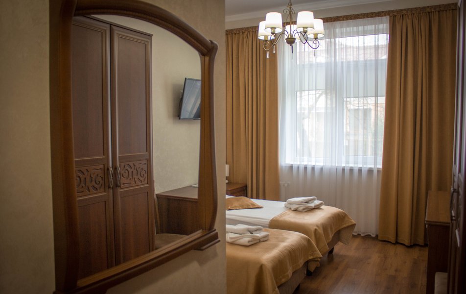 Комфорт 2-местный 1-комнатный (TWIN) Количество комнат: 1-комнатный Тип номера: Стандартный Кол-во основных мест: 2 Площадь (кв. м): 18 Мебель: вешалка, зеркало, кровати односпальные, прикроватные тумбочки, шкаф Оборудование: кондиционер, телевизор, холодильник Санузел: с душем, туалетные принадлежности Сервис: Wi-Fi бесплатно, смена полотенец, смена постельного белья, уборка номера