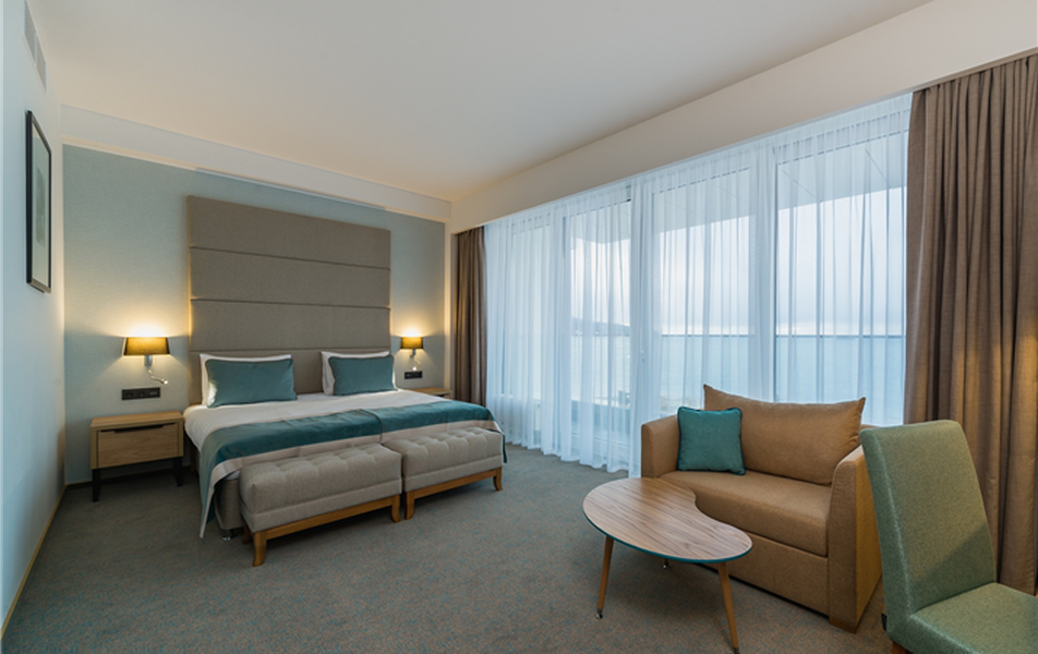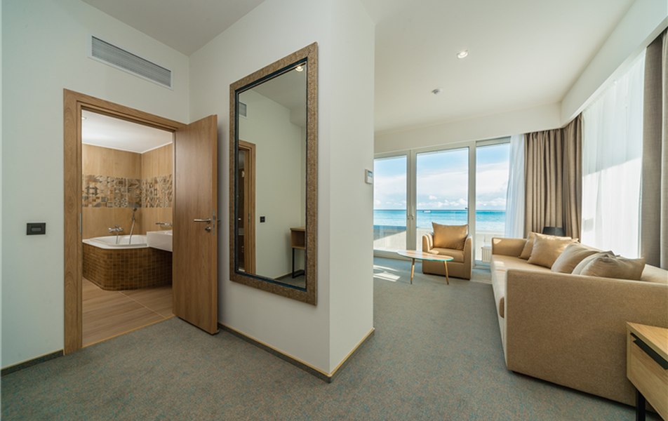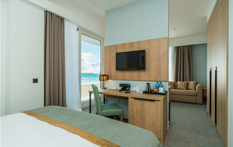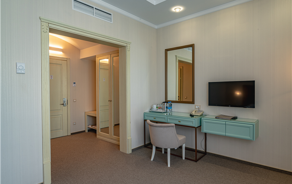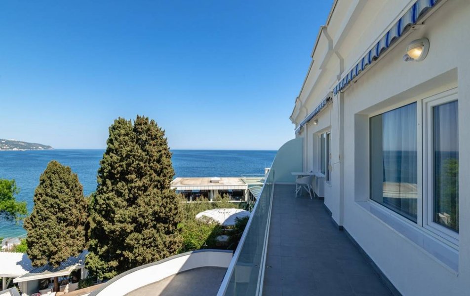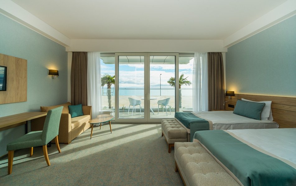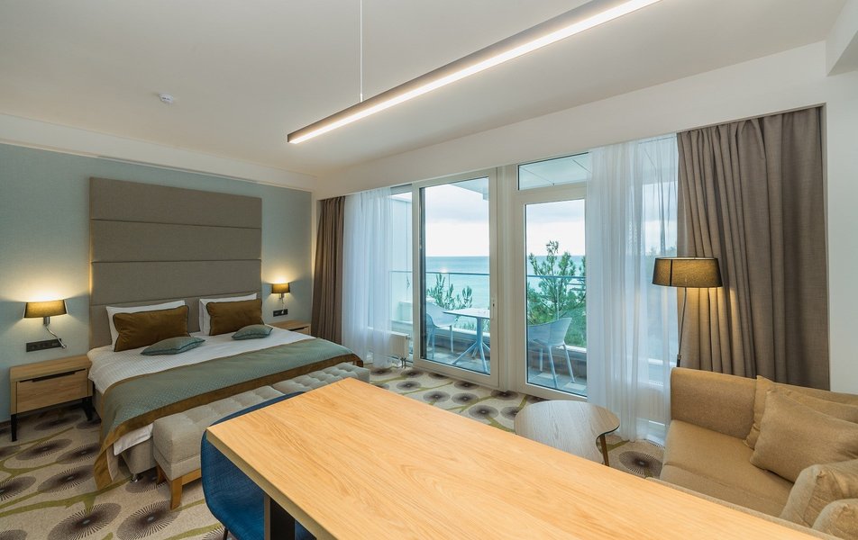 Отдыхали в отеле по многочисленным рекомендациям знакомых, прекрасное расположение: первая линия, вид на море из комплекса «Лето», променад по Приморскому пляжу в центр, хороший спа-комплекс с бассейном. С парковкой пришлось потрудиться, количество мест ограничено, приходится располагать подальше авто. Не слишком очевидна навигация по комплексу. В комплексе «Лето» новый ремонт, имеется лифт, вежливый персонал. Нлмер категории «Делюкс» довольно просторный, великолепный вид на море, балкон с мебелью, ТВ, холодильник, кондиционер, фен, чайник, чайный набор, вода по 0,5л, косметика, тапочки.Большой спа-комплекс с разнообразными парными, крытым и открытым бассейном. В летнее время работают спасатели на пляже, пляж благоустроенный лежаками, зонтами и полотенцами для гостей отеля. В качестве презента имениннику дарят бутылку шампанского. Завтраки проходят в ресторане «Фабрикант» по системе «шведская линия», разнообразный выбор блюд и напитков. Столики как внутри, так и на веранде, утопающий в зелени с красивым видом на море. Территория отеля хорошо благоустроена, разные виды растений и деревьев, из отеля напрямую можно выйти на набережную и в Приморский парк. В отеле круглый год действуют скидки при бронировании через сайт отеля. Рекомендую отель для отдыха!