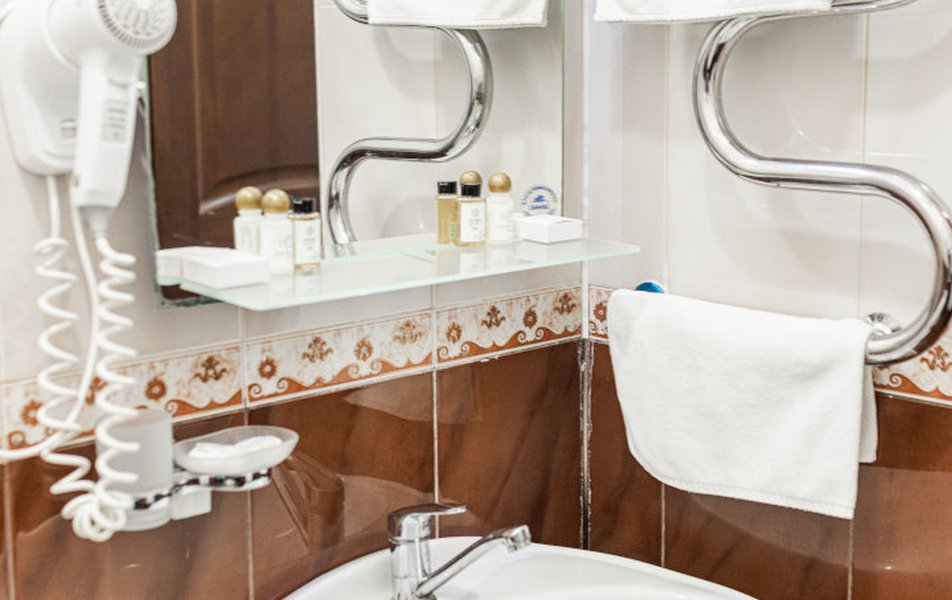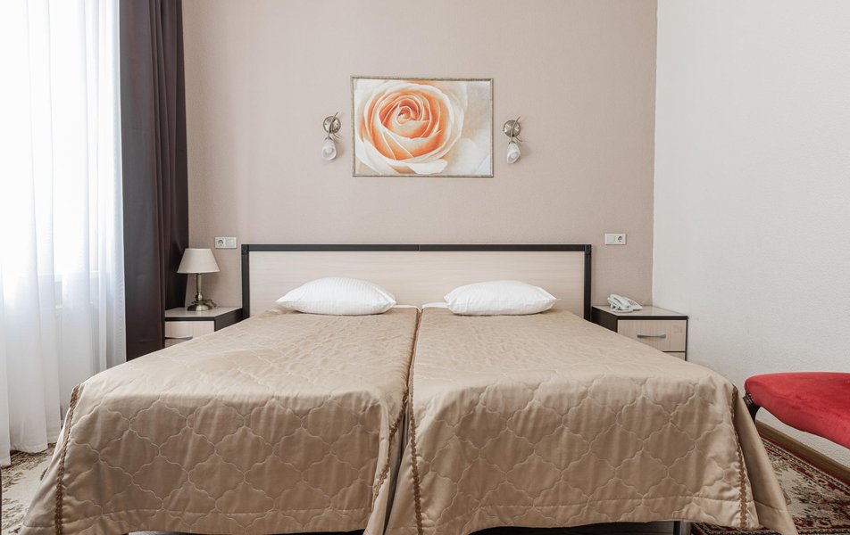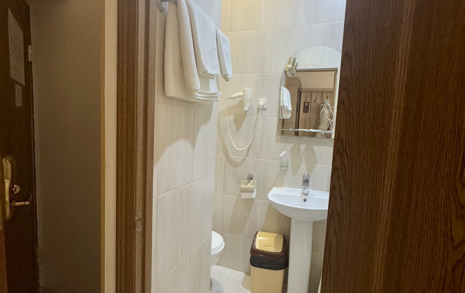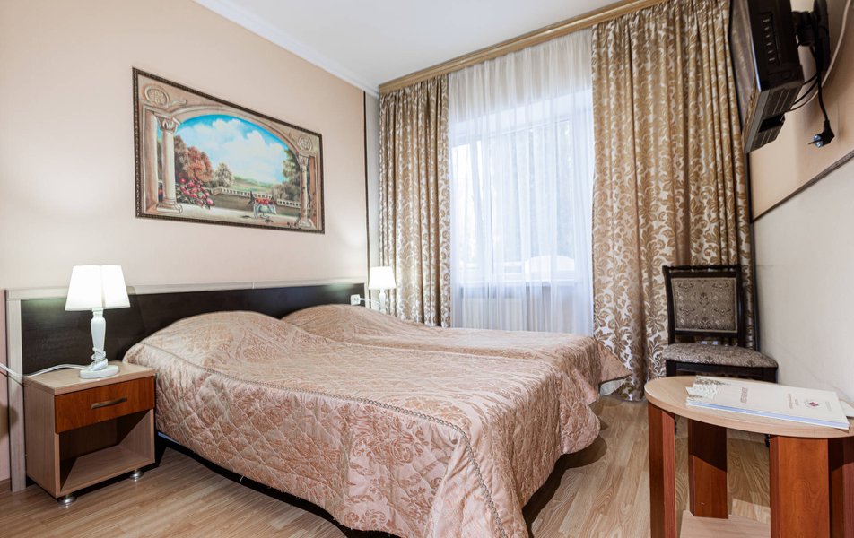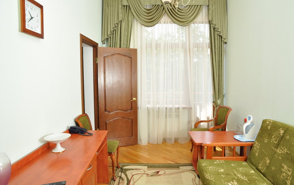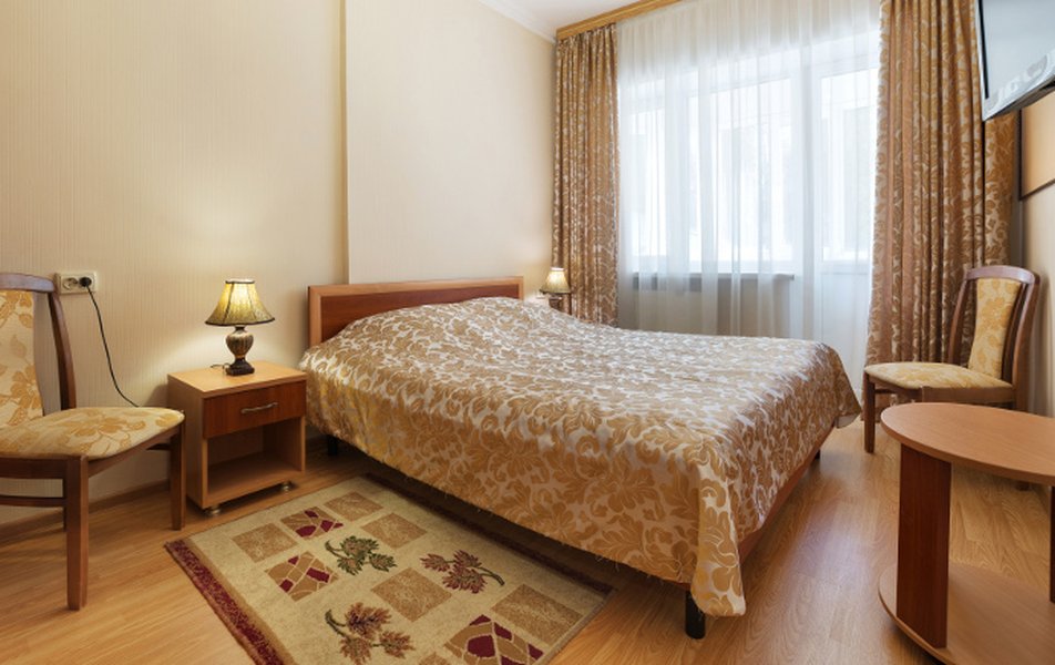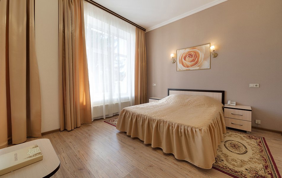 Расположение санатория удачное. Через верхнюю проходную выход практически к остановке экскурсионных электромобильчиков и Красным камням. Доехали с частником от вокзала за 500р. Обратно на яндекс такси за 160р. Можно и пешком дойти, если чемоданы не тяжелые, где-то 1.5 км. Правда в горку. Просите чтоб везли к верхней проходной. Номер был на 5ом этаже( 514), шикарный вид на парк, окно не закрывали — воздух чистейший! Номер понравился, немного подуставший, но в целом все хорошо. Номер двухкомнатный. Есть своя ванна. Два телевизора, фен, утюг с гладильной доской, холодильник. Звукоизоляция, правда, не очень. Убирались каждый день, обычную воду ставили 2х0.5, минералка только 1 раз по приезду. С водой проблемы. Или покупайте в лобби баре или пейте из кулера, что на этаже. Я чайник в кулере набирал, когда хотел в номере чайку попить. Wi-fi нормальный , не тормозил. Правда, когда мы были, народу было не много. Ели в ресторане Панорама . Чтобы туда попасть нужно было спуститься на 3 этаж, пройти до конца направо (если стоишь спиной к лифту) и подняться на 4ый. Кормили неплохо. Гриля не было конечно, все таки санаторий, еда должна быть здоровой, хотя выпечки и тортиков хватало. Сыр и колбаса были нарезаны по толщине папиросной бумаги. На завтрак была красная икра в розеточках. Понравился отвар из шиповника. После ударных прогулок по косогорам — самое то! В общем несмотря на некоторое однообразие, кормят в санатории хорошо, наедались. Теперь по поводу лечения. Санаторно-курортную карту лучше бесплатно делать в своей поликлинике. Здесь она обойдется рублей в 400. Процедурами меняться нельзя. Я думал жене отдать свои масажи, не положено. Лучше брать путевку без лечения и процедуры покупать на месте. Тогда возьмете то и сколько вам нужно. Персонал доброжелательный. Можно проходить процедуры и раньше и позже, чем вам назначено. Мало ли какие у вас планы на день, так что можно сдвинуть, ругаться не будут. В санатории есть своя аптека в 3м корпусе на 2ом этаже, самое необходимое можно купить. Цены нормальные. Досуг какой-то есть. Мы не ходили, но постоянно кто-то выступает. И платно и бесплатно. Зал хороший, вместительный. Территория красивая, ухоженная. Есть где погулять. Много котиков. В целом санаторий произвел хорошее впечатление. Думаем в следующем году приехать снова.