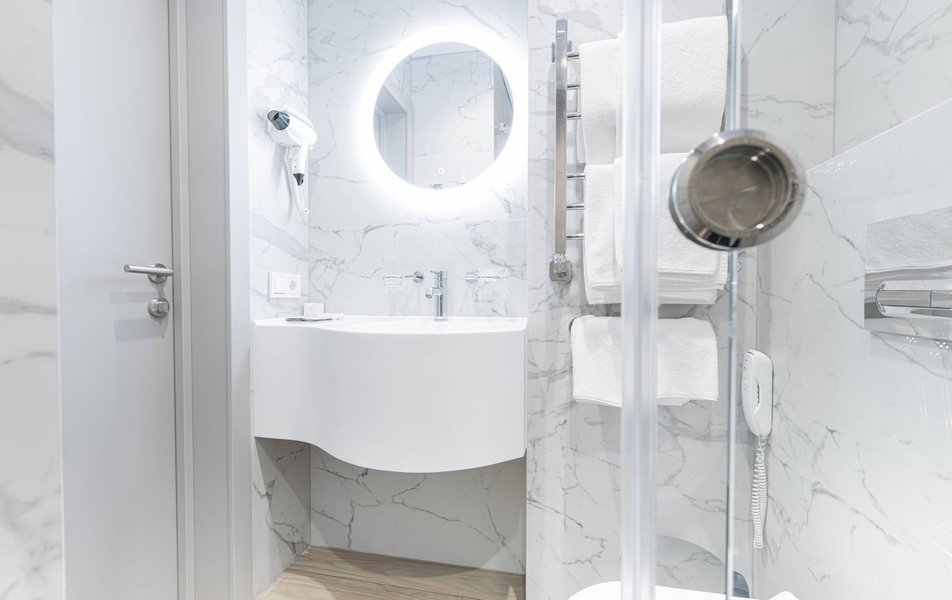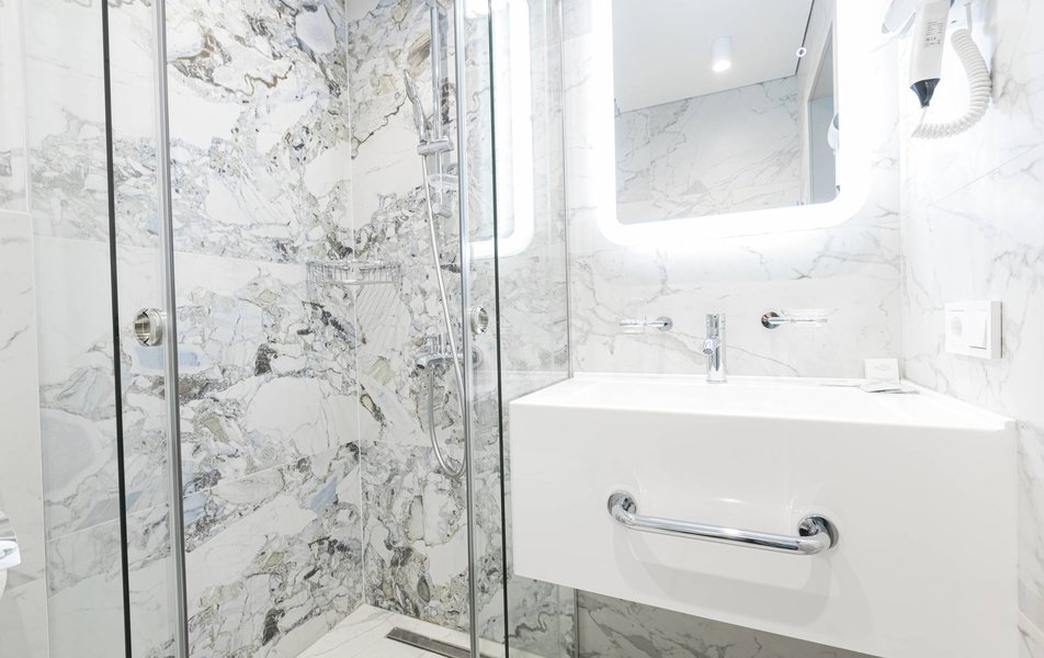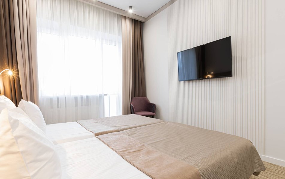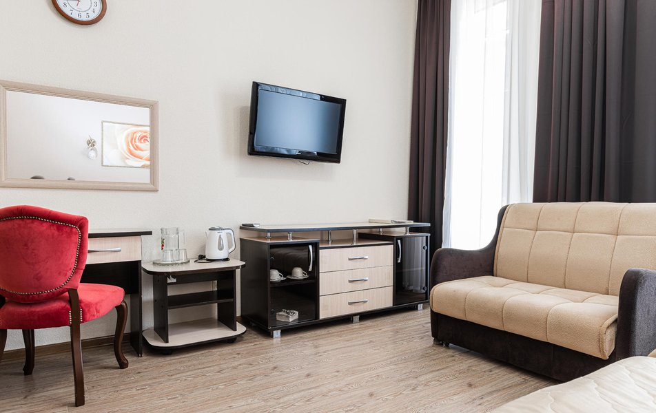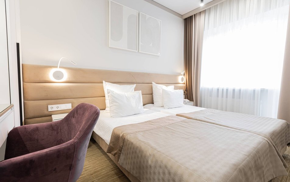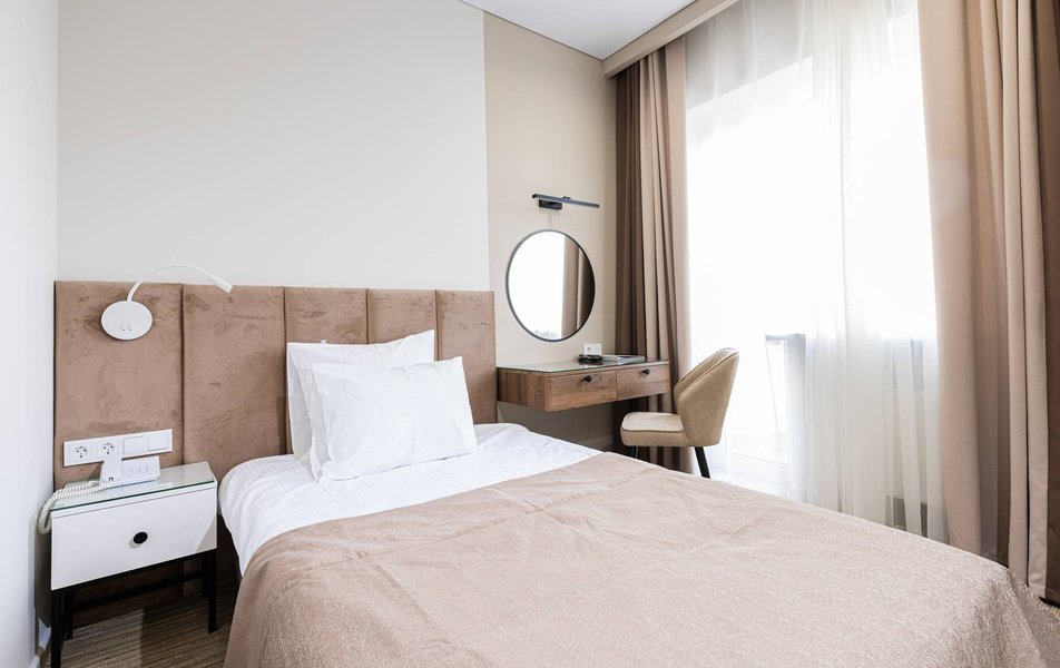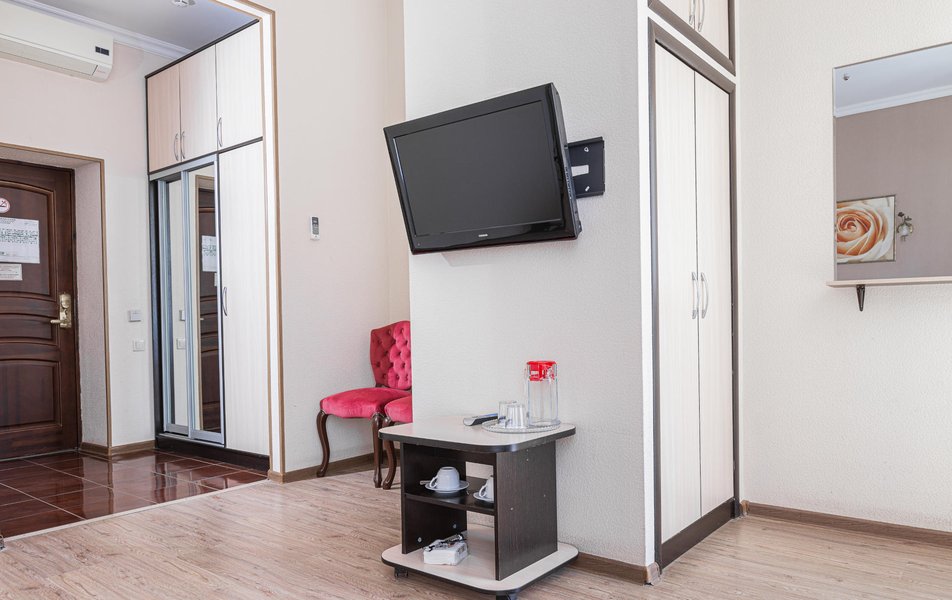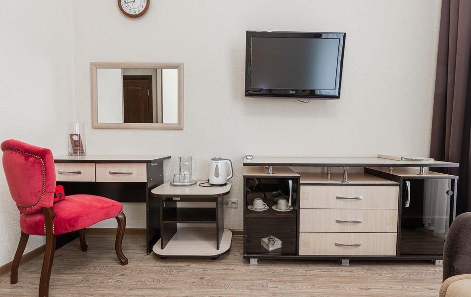 Расположение санатория удачное. Через верхнюю проходную выход практически к остановке экскурсионных электромобильчиков и Красным камням. Доехали с частником от вокзала за 500р. Обратно на яндекс такси за 160р. Можно и пешком дойти, если чемоданы не тяжелые, где-то 1.5 км. Правда в горку. Просите чтоб везли к верхней проходной. Номер был на 5ом этаже( 514), шикарный вид на парк, окно не закрывали — воздух чистейший! Номер понравился, немного подуставший, но в целом все хорошо. Номер двухкомнатный. Есть своя ванна. Два телевизора, фен, утюг с гладильной доской, холодильник. Звукоизоляция, правда, не очень. Убирались каждый день, обычную воду ставили 2х0.5, минералка только 1 раз по приезду. С водой проблемы. Или покупайте в лобби баре или пейте из кулера, что на этаже. Я чайник в кулере набирал, когда хотел в номере чайку попить. Wi-fi нормальный , не тормозил. Правда, когда мы были, народу было не много. Ели в ресторане Панорама . Чтобы туда попасть нужно было спуститься на 3 этаж, пройти до конца направо (если стоишь спиной к лифту) и подняться на 4ый. Кормили неплохо. Гриля не было конечно, все таки санаторий, еда должна быть здоровой, хотя выпечки и тортиков хватало. Сыр и колбаса были нарезаны по толщине папиросной бумаги. На завтрак была красная икра в розеточках. Понравился отвар из шиповника. После ударных прогулок по косогорам — самое то! В общем несмотря на некоторое однообразие, кормят в санатории хорошо, наедались. Теперь по поводу лечения. Санаторно-курортную карту лучше бесплатно делать в своей поликлинике. Здесь она обойдется рублей в 400. Процедурами меняться нельзя. Я думал жене отдать свои масажи, не положено. Лучше брать путевку без лечения и процедуры покупать на месте. Тогда возьмете то и сколько вам нужно. Персонал доброжелательный. Можно проходить процедуры и раньше и позже, чем вам назначено. Мало ли какие у вас планы на день, так что можно сдвинуть, ругаться не будут. В санатории есть своя аптека в 3м корпусе на 2ом этаже, самое необходимое можно купить. Цены нормальные. Досуг какой-то есть. Мы не ходили, но постоянно кто-то выступает. И платно и бесплатно. Зал хороший, вместительный. Территория красивая, ухоженная. Есть где погулять. Много котиков. В целом санаторий произвел хорошее впечатление. Думаем в следующем году приехать снова.