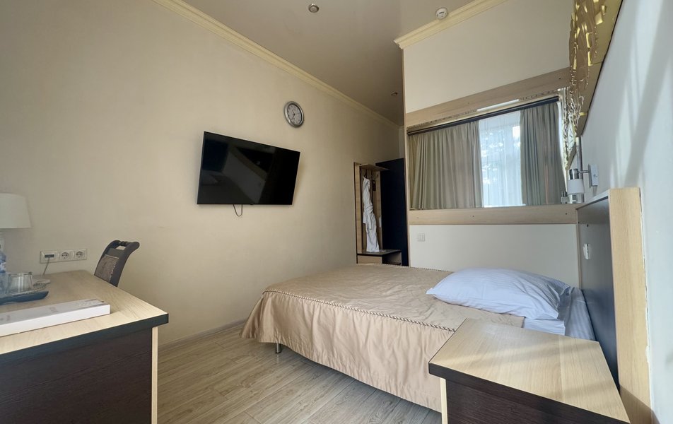 В этом санатории отдыхали вместе с женой второй раз: первый - в феврале 2022г, второй - неделю в декабре 2024-январе2025 г. Сразу скажу, что лечения мы никакого не проходили, а просто отдыхали в этом прекрасном санатории. Кстати, это очень удобно - не нужно никаких санаторно-курортных карт, флюорографий, справок и т.д. А если что-то все-таки придумаете "оздоровить", то пожалуйста, за дополнительную плату врач вам назначит любые процедуры, ванны и т.д., коих здесь очень большое количество.Сразу нужно отметить два критерия, по которому мы второй раз выбрали это место: отличное расположение санатория и вкусное, разнообразное питание по системе "шведский стол". Санаторий расположен прямо в верхнем парке, что очень удобно для разнообразнейших прогулок по многочисленным и живописным терренкурам. За 10-15 минут можно дойти до канатной дороги, по которой можно подняться на гору еще на 200м , откуда в ясную солнечную погоду (а такая была все новогодние дни) прекрасно виден двуглавый Эльбрус в окружении кавказских гор. А вот с горы можно спуститься пешком по благоустроенной горной дорожке (в принципе, по ней можно пешком и подняться). Что касается питания, то все было отлично организовано- никаких толкучек, всего и всем хватало, на предновогодний ужин было шампанское и бутерброды с икрой. А 1 января прямо на площадке перед санаторием было устроено шулюм-пати с прекрасным бараньим шулюмом и отличным глинтвейном. В номере (жили в "стандарте" 1-го корпуса) есть все, что соответствует приличному отелю: телевизор, холодильник, чайник, посуда, в душе мыло, шампунь и гель. Убирали каждый день, все чисто и аккуратно, звукоизоляция хорошая, никого из соседей мы не слышали. Вообщем, я смело могу рекомендовать данный санаторий для вашего отдыха.