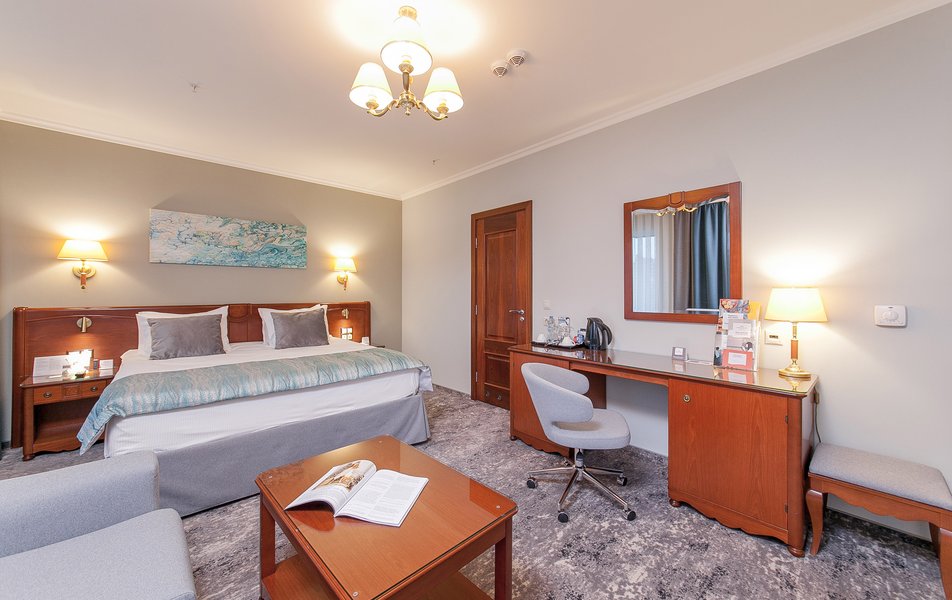 Прекрасный отель, На ресепшен доброжелательные сотрудники, Холл с компьютером и опцией распечатки документов. Много лифтов, новые. В самом отеле очень чисто и уютно. хорошая система с климат контролем, удачно расположен в центре города и пешей доступности от главных достопримечательностей( кроме парка Галицкого конечно). Номера чистые и уютные. Нас любезно спросили какой вид из номера мы хотим. Номер был на 4 этаже с видом на фонтан- супер! матрасы хорошие, несколько подушек на выбор. В Ванне меняли полотенца каждый день, есть халаты и тапочки, хорошая косметика( шампунь, бальзам для волос, гель, лосьон для тела, зубная щетка и паста, шапочка и тд) чего не хватают- могут донести в номер. набор для приготовления чая и кофе с чаем и кофе и водичку пополняли каждый день. В номере холодильник. Прекрасные завтраки шведский стол. Где можно найти на любой вкус и возраст еду, от красной рыбки до ухи или борща на завтрак, и бокал шампанского, кто любит завтрак в богемном стиле)) Омрачил отдых два инцидента. Первый в бассейне. Сам бассейн хорош! после жаркого дня было супер окунуться и поплавать. Есть сауна и Хаммам. работают каждый день, можно посещать с 7 утра до 23:00( сауна до 22:00). в последний день в бассейн зашла буйная компания здоровых мужиков, которая прыгала со всех частей бассейна устраивая шоу. было просто нереально плавать, так как брызги или пятка по голове. Хотя и стоят таблички " не прыгать" всем было все равно. и грустно, что сотрудники имея камеры просто не следят за этим( в итоге мы просто ушли из бассейна. так как равные парни оставили нам место в только в уголочке. Второй инцидент был с рестораном "Барин" на 14 этаже. мы хотели заказать десерты в номер, так как расстроились от такой ситуации с бассейном, так в ресторане нам ответил хамоватый мужчина, что никуда он спускаться не будет, диктовать что в меню не будет, мол пробуйте меню кьюар коду открыть самостоятельно. Это отвратительно(