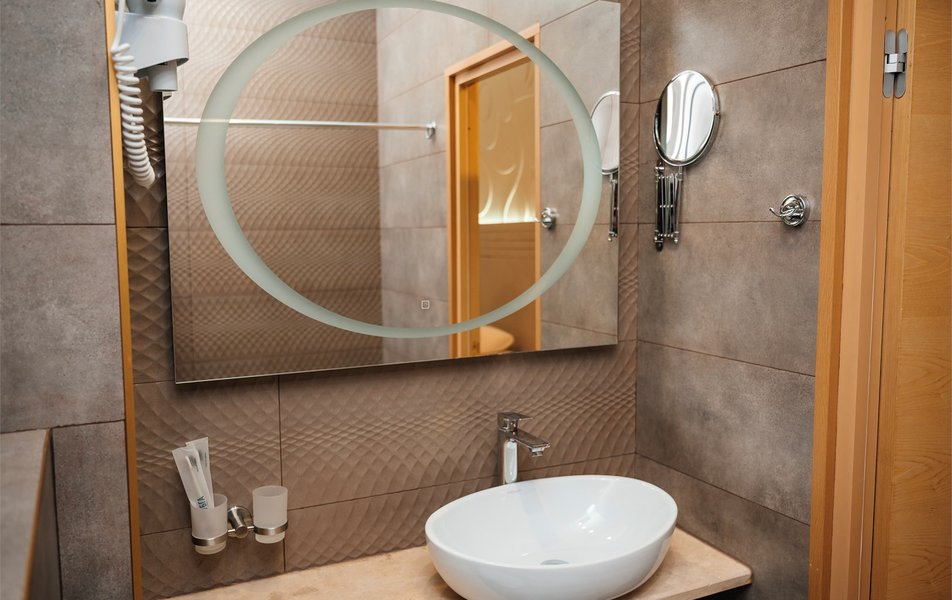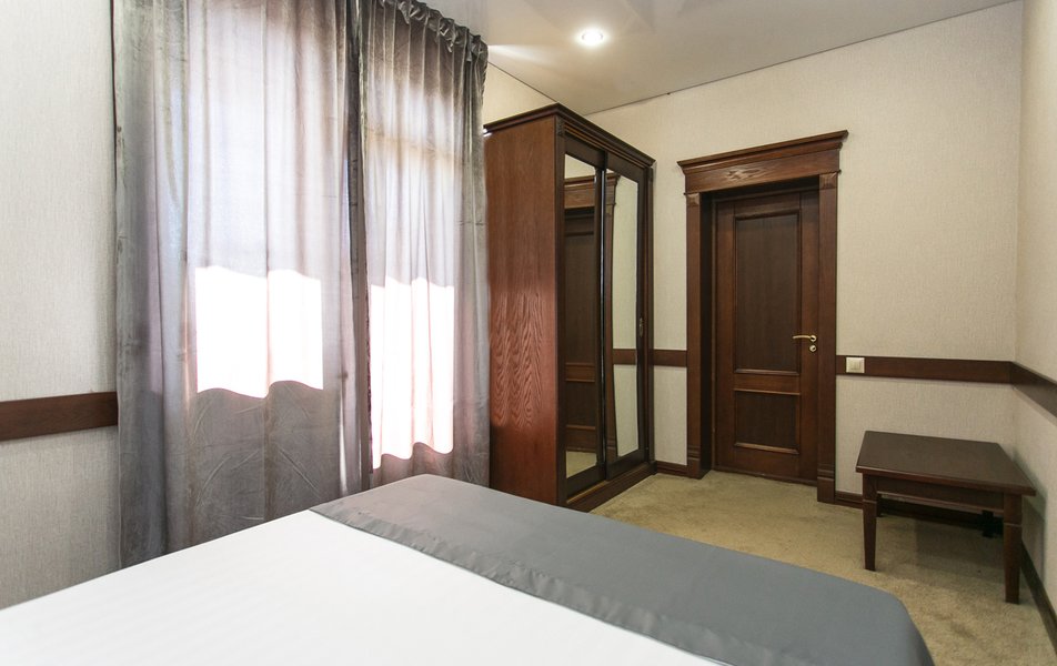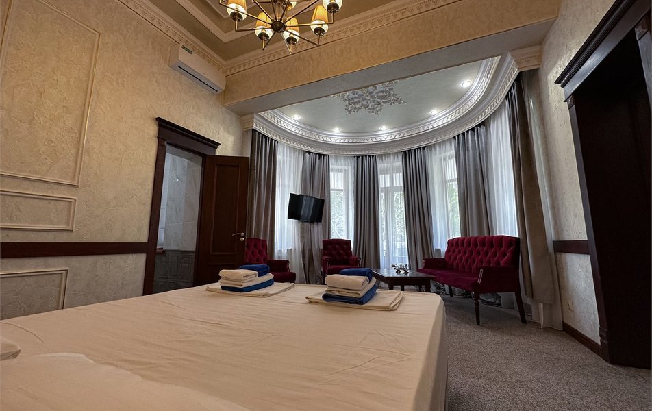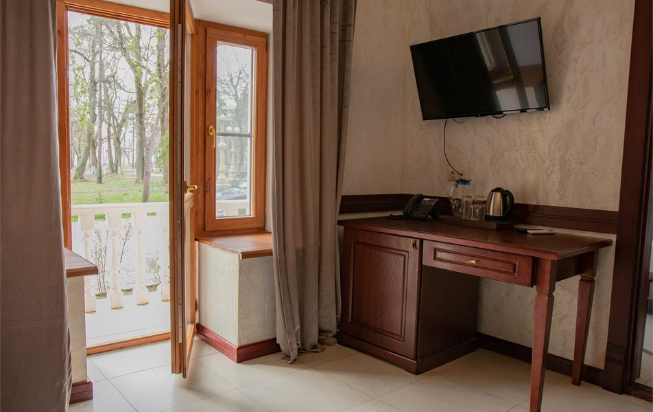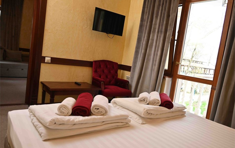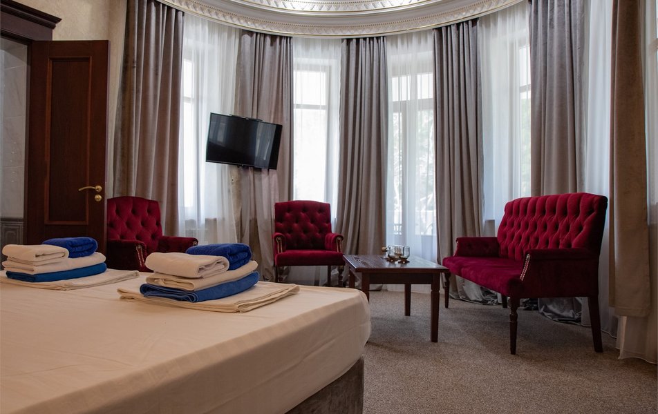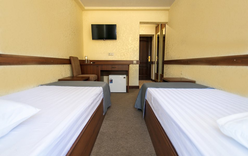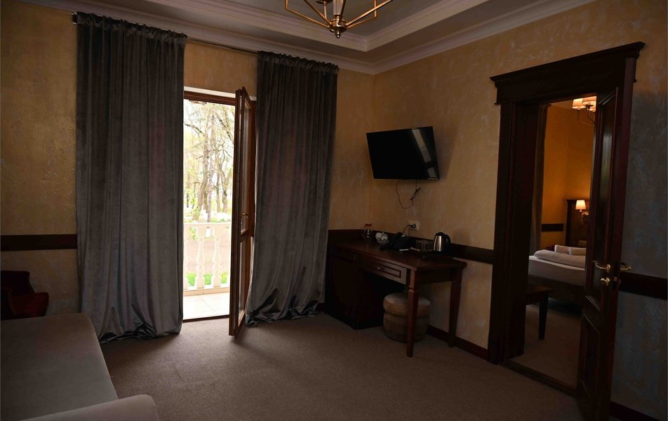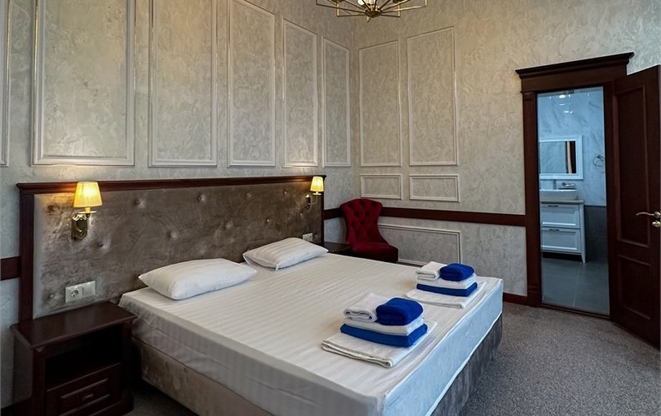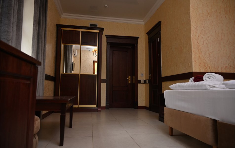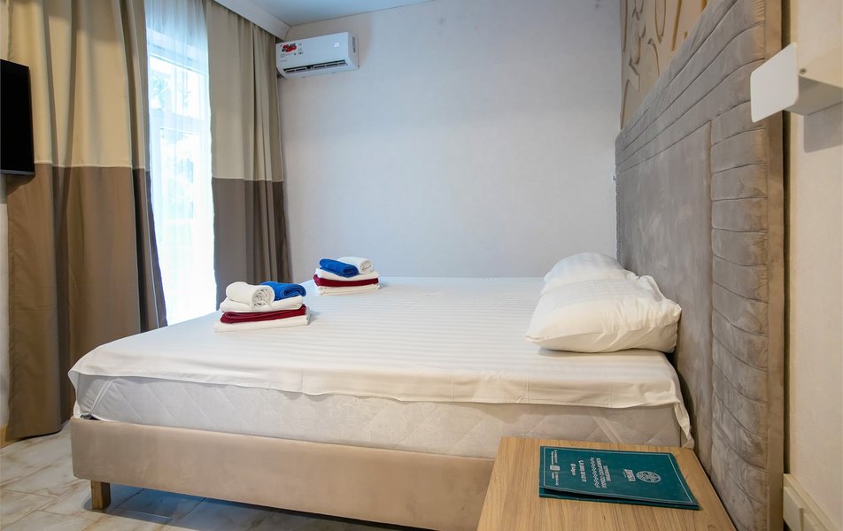 Апартаменты 3-местный 2-комнатный (Видовой, корпус «Пушкино») Количество комнат: 2-комнатный Тип номера: Апартаменты Дополнительное место: диван, еврораскладушка Вид из номера: на парк Кол-во доп. мест: 2 Кол-во основных мест: 3 Корпус: Пушкино Площадь (кв. м): 27 Мебель: вешалка, диван раскладной, зеркало, кровать двуспальная, прикроватные тумбочки, стол, столик журнальный, стулья, шкаф Оборудование: мини-холодильник, сплит-система, телевизор, телефон, чайная станция Санузел: с ванной, тапочки, туалетные принадлежности, фен, халат Сервис: Wi-Fi бесплатно, смена полотенец, смена постельного белья, уборка номера, услуги внутренней телефонной связи
