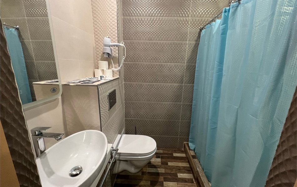 Апартаменты 3-местный (с кухней) Количество комнат: 1-комнатный Тип номера: Апартаменты Дополнительное место: раскладной диван Кол-во доп. мест: 1 Кол-во основных мест: 3 Площадь (кв. м): 53 Мебель: вешалка, диван раскладной, зеркало, кровать двуспальная, кухонная мебель, прикроватные тумбочки, стол, стол обеденный, стулья, шкаф Оборудование: мини-холодильник, набор посуды, сплит-система, телевизор, телефон, чайный набор посуды, электрочайник Санузел: с душем, тапочки, туалетные принадлежности, фен, халат Сервис: Wi-Fi бесплатно, смена полотенец, смена постельного белья, уборка номера, услуги внутренней телефонной связи