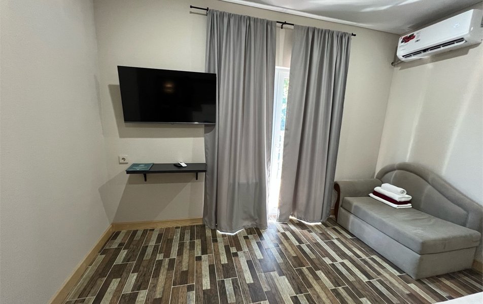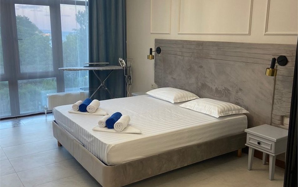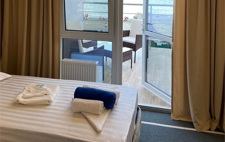Апартаменты 3-местный 2-комнатный (с кухней) Количество комнат: 2-комнатный: без межкомнатной двери Тип номера: Апартаменты Дополнительное место: раскладной диван Вид из номера: на море Кол-во доп. мест: 2 Кол-во основных мест: 3 Корпус: Дача Лаврова Площадь (кв. м): 58 Мебель: вешалка, диван раскладной, зеркало, кровать двуспальная, кровать односпальная, кухонная мебель, прикроватные тумбочки, стол, стол обеденный, стулья, шкаф Оборудование: микроволновая печь, мини-холодильник, набор посуды, сплит-система, стиральная машина, телевизор, телефон, холодильник, чайный набор посуды, электрочайник Санузел: с ванной, тапочки, туалетные принадлежности, фен, халат Сервис: Wi-Fi бесплатно, смена полотенец, смена постельного белья, уборка номера, услуги внутренней телефонной связи