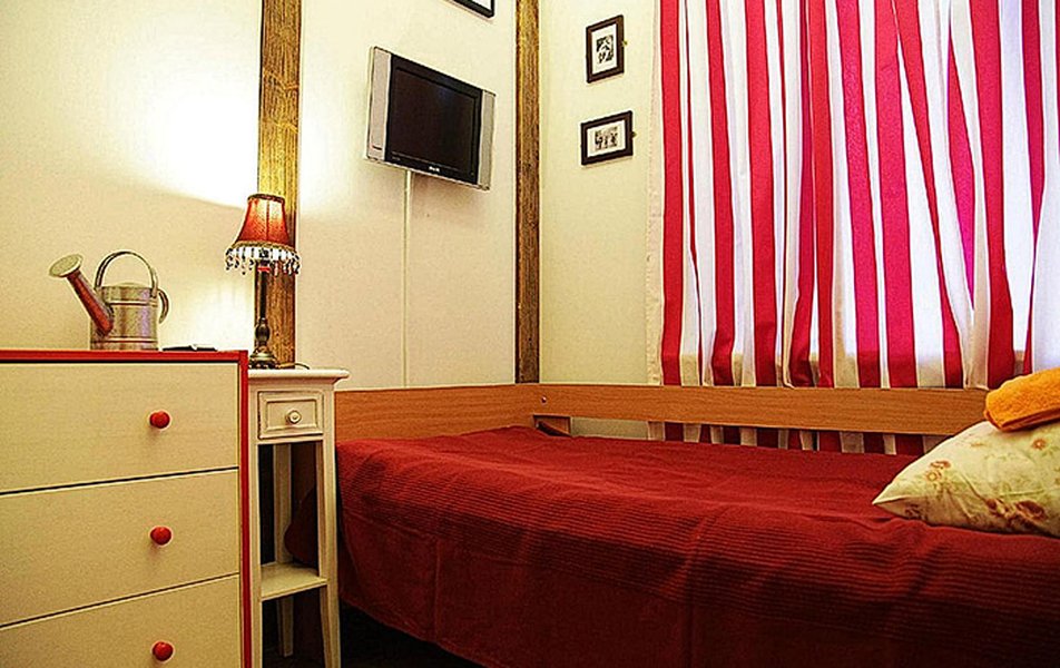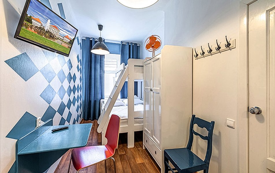 Место 6-местный (женский) Количество комнат: 1-комнатный Кол-во основных мест: 1 Мебель: вешалка, зеркало, кровать двухъярусная: 3 и локеры для вещей Сервис: Wi-Fi бесплатно, уборка номера: ежедневно