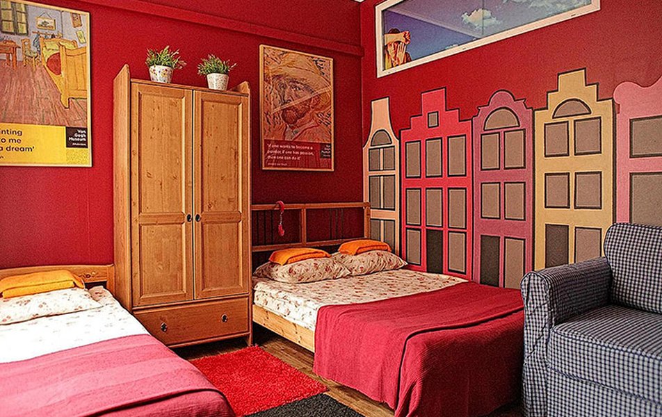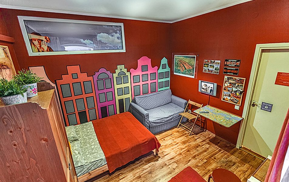 Место 6-местный (мужской) Количество комнат: 1-комнатный Кол-во основных мест: 1 Мебель: вешалка, зеркало, кровать двухъярусная: 3 и локеры для вещей Сервис: Wi-Fi бесплатно, уборка номера: ежедневно