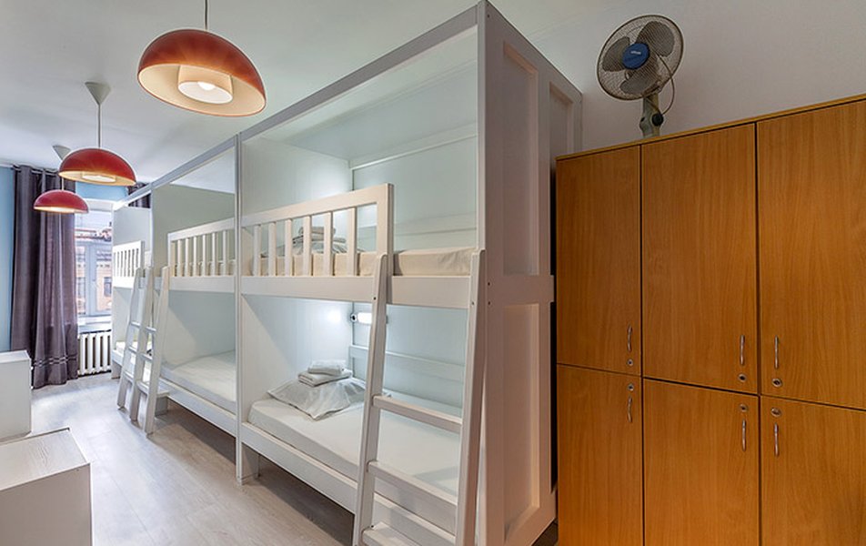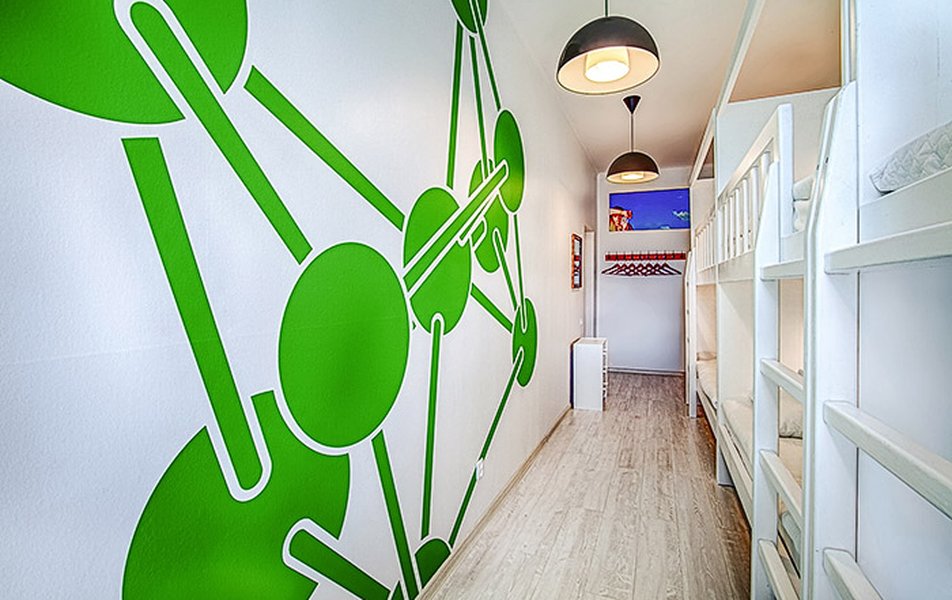 Место 6-местный (смешанный) Количество комнат: 1-комнатный Кол-во основных мест: 1 Мебель: вешалка, зеркало, кровать двухъярусная: 3 и локеры для вещей Сервис: Wi-Fi бесплатно, уборка номера: ежедневно