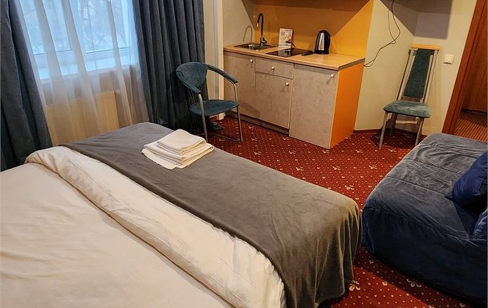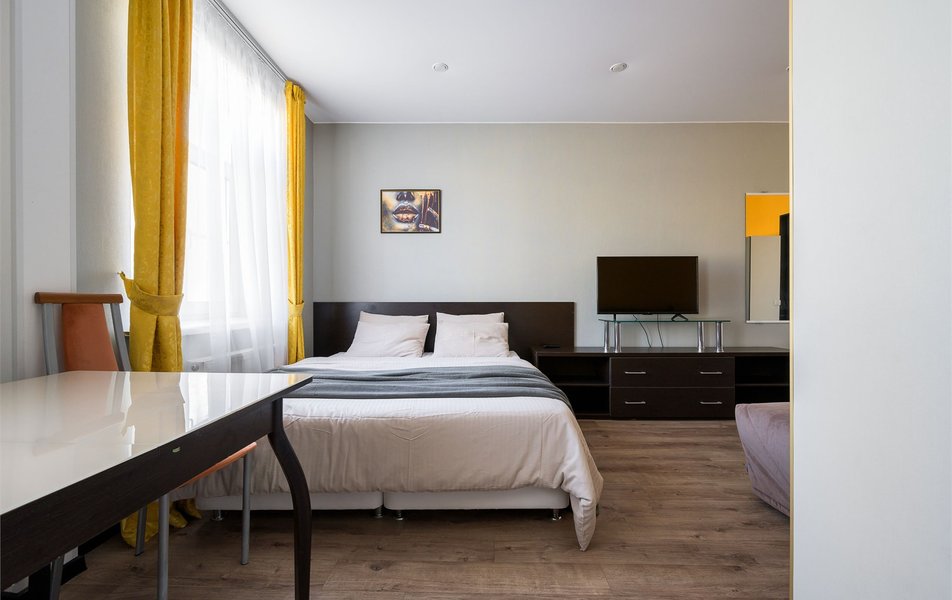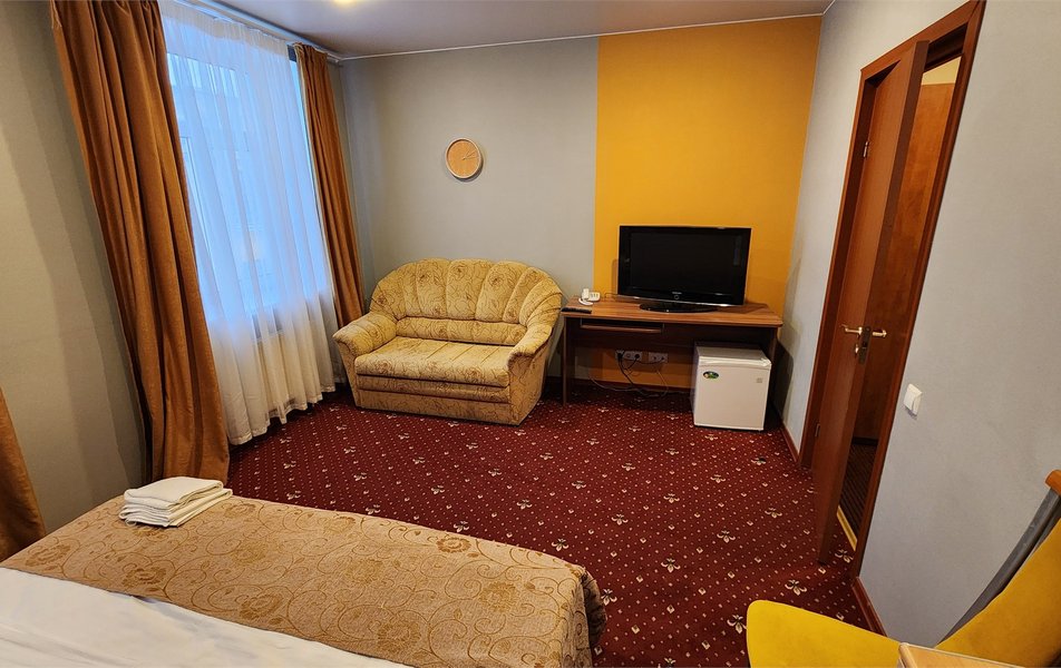 Останавливались с мужем в отеле на три ночи, номер «люкс»200. В номере пыль везде: подоконники, телевизор, шкафы, заляпанная посуда. У кресла отвалился подлокотник, отнесла в первый же день на ресепшен, но так и не отремонтировали. В номере душно, выдали вентилятор, который не справлялся с жарой, мусор вынесли только на третий день, хотя просила об этом ранее. Ну и изюминка на кексе: душевая кабина течёт! После каждого посещения, приходилось самой черпать воду с пола. Сказали вызвали мастера, но т.к. выходные, то ничего не сделали. Администратор выдала тряпки и ведро️. Двери в номере хлебают, при малейшем движении они гремят. В общем не рекомендую. За 4300 в сутки можно найти более достойный вариант