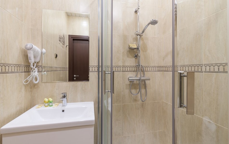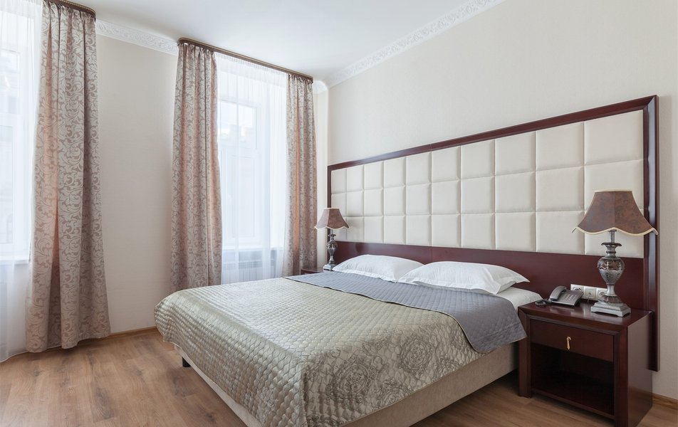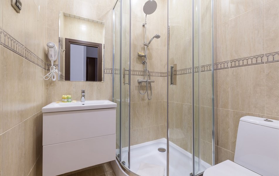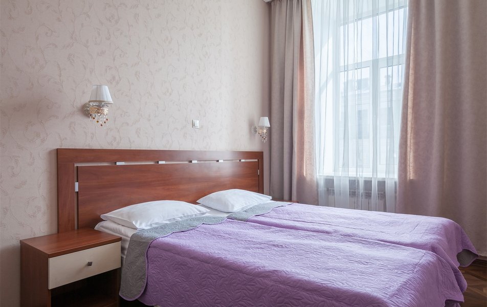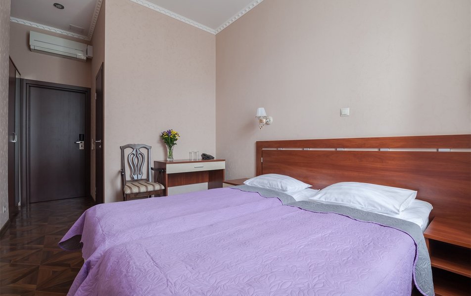 Улучшенный 2-местный 1-комнатный DBL/TWIN Количество комнат: 1-комнатный Тип номера: Улучшенный Кол-во основных мест: 2 Площадь (кв. м): 20 Мебель: вешалка, зеркало, кровати односпальные /одна двуспальная кровать, прикроватные тумбочки, стол, стулья, шкаф Оборудование: мини-холодильник, сейф, сплит-система, телевизор ЖК Санузел: с душевой кабиной, тапочки, туалетные принадлежности, фен Сервис: Wi-Fi бесплатно, карточная система замков, смена полотенец, смена постельного белья, уборка номера