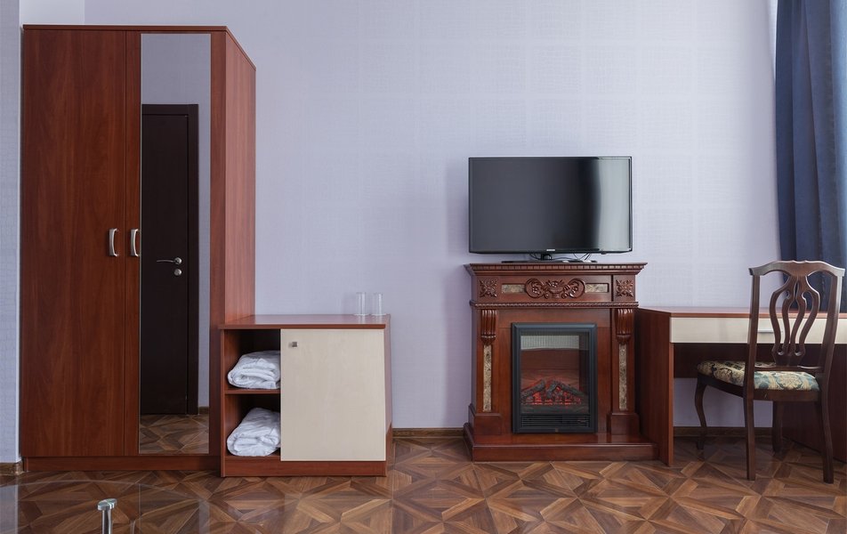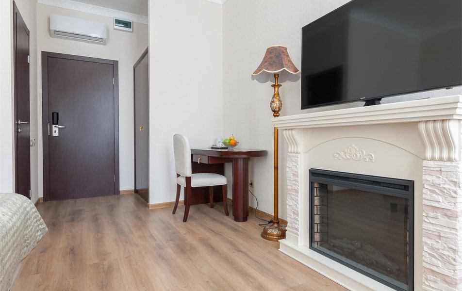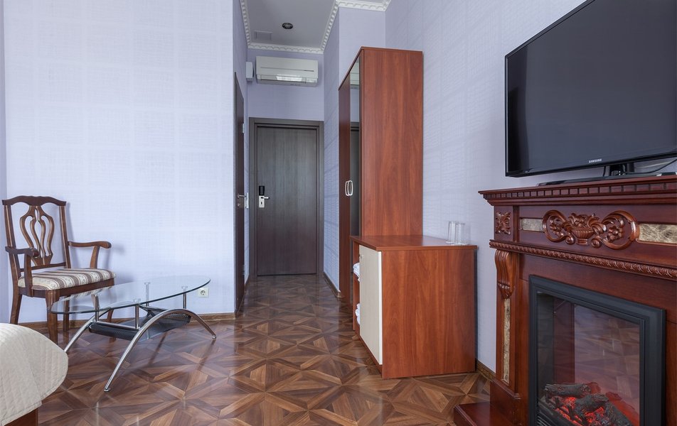 Улучшенный 3-местный 1-комнатный DBL Количество комнат: 1-комнатный Тип номера: Улучшенный Кол-во основных мест: 3 Площадь (кв. м): 23 Мебель: вешалка, зеркало, кресло-кровать, кровать двуспальная, прикроватные тумбочки, стол, стулья, шкаф Оборудование: камин, мини-холодильник, сейф, сплит-система, телевизор ЖК Санузел: с душевой кабиной, тапочки, туалетные принадлежности, фен Сервис: Wi-Fi бесплатно, карточная система замков, смена полотенец, смена постельного белья, уборка номера