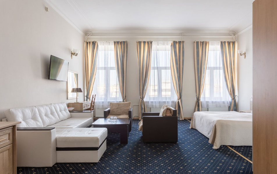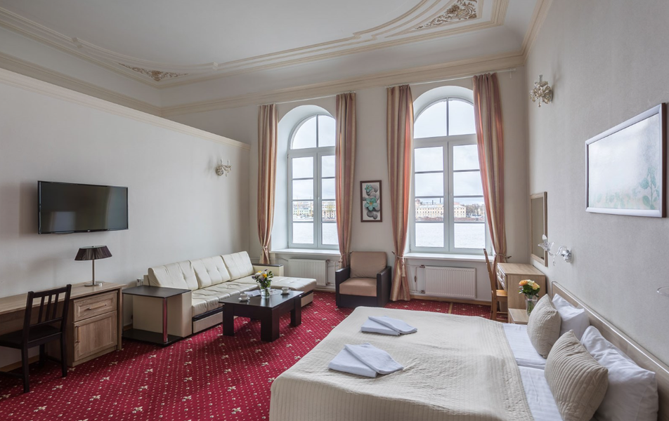 Решили обновить с мужем и дочкой впечатления о Петербурге. Так как собирались ехать на машине, то выбирали отель с собственной парковкой и в центре. Выбор пал на Молво. Не пожалели ни разу и по приезду домой, посоветовали всем друзьям и знакомым. Отель на Английской набережной. Рядом практически все достопримечательности. Петербург же и предполагает ходьбу. Вот мы и прекрасно гуляли: до Невского, до Адмиралтейства, до Исаакия. Рядом очень много разных уютных кафе и ресторанов. Парковка во дворе гостиницы, бесплатная. Загнал машину во двор и ни о чем не беспокоишься. Нужно, выехал. Отлично! На ресепшен отличные администраторы. Быстро оформили, все рассказали. Нам сначала дали номер на первом этаже. Переговорили, за доплату переселили в больший номер на втором на следующий день. На первом этаже маленькая, но очень чистая кухня с чайником и микроволновкой. Уборка номеров каждый день. Отличная. Таких охранников мы не встречали ни в одной гостинице. Очень вежливые. Рассказали много интересного про город, дали много полезных советов. Спасибо за отличный отдых. Однозначно по приезду в Питер, теперь останавливаемся только у вас.