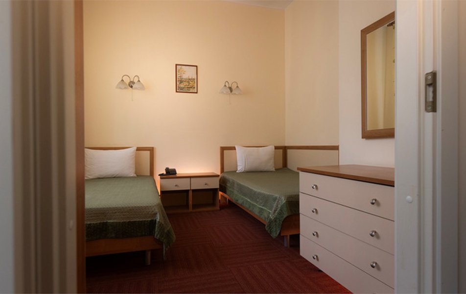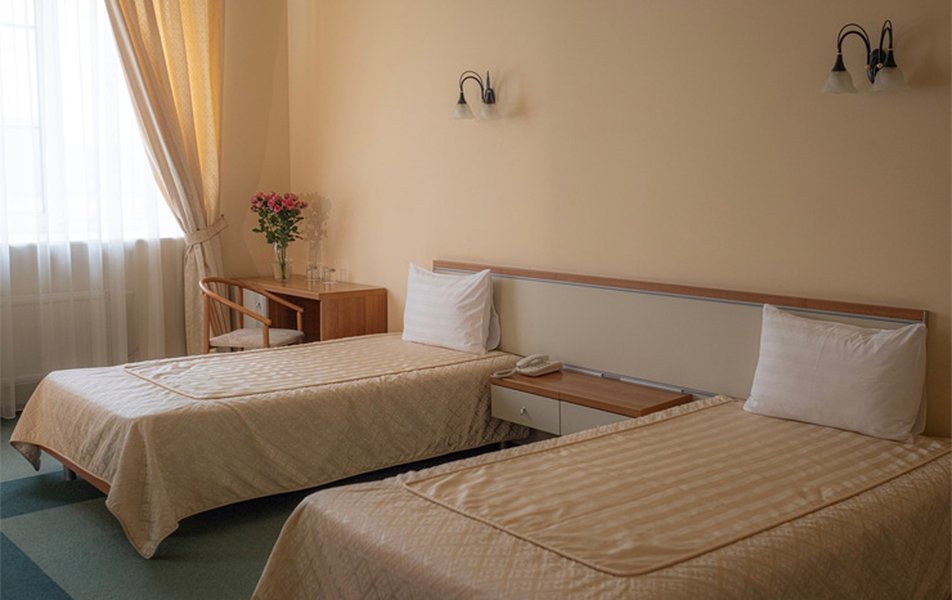 Стандартный 2-местный 1-комнатный Количество комнат: 1-комнатный Тип номера: Стандартный Дополнительное место: еврораскладушка Вид из номера: на город: или во двор Кол-во доп. мест: 1 Кол-во основных мест: 2 Площадь (кв. м): 30 Мебель: вешалка, зеркало, комод, прикроватные тумбочки, стол, стул, шкаф Оборудование: кондиционер, мини-холодильник, набор посуды, сейф, телевизор, телефон, электрочайник Санузел: с душем, туалетные принадлежности, фен Сервис: Wi-Fi бесплатно, карточная система замков, смена полотенец, смена постельного белья, уборка номера, услуги внутренней телефонной связи