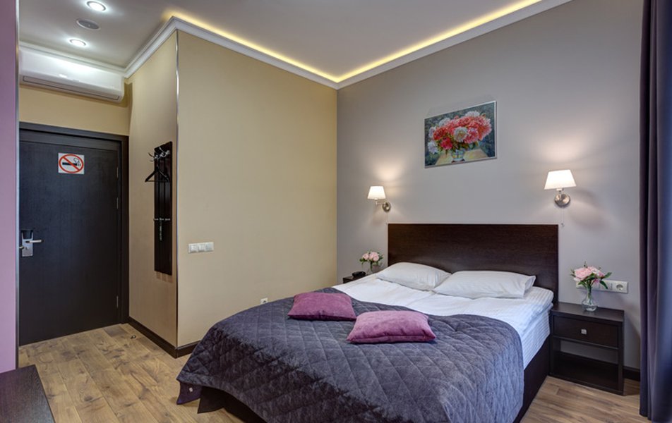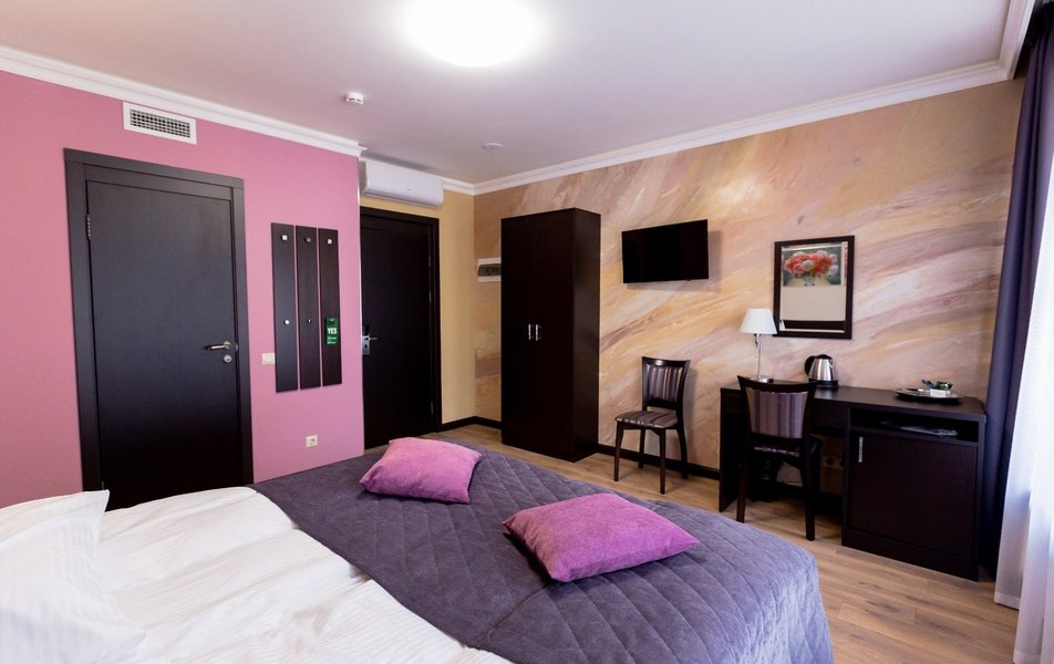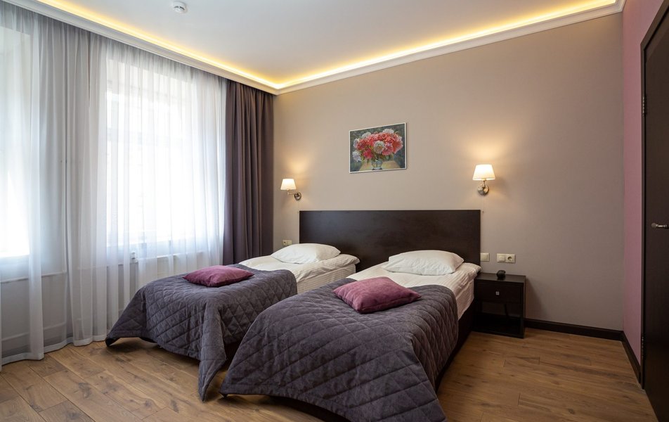 Комфорт 2-местный Количество комнат: 1-комнатный Тип номера: Комфорт Кол-во основных мест: 2 Площадь (кв. м): 15 Мебель: вешалка, кровати односпальные /одна двуспальная кровать, прикроватные тумбочки, стол, стулья, шкаф Оборудование: кондиционер, мини-холодильник, сейф, телевизор ЖК, телефон, электрочайник Санузел: с ванной, тапочки, туалетные принадлежности, фен Сервис: Wi-Fi бесплатно, смена полотенец: по требованию, смена постельного белья: 1 раз в 3 дня, уборка номера: ежедневно, услуги внутренней телефонной связи