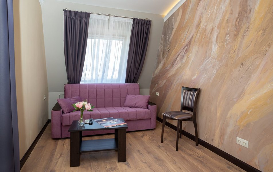 Люкс 2-местный 2-комнатный Количество комнат: 2-комнатный Тип номера: Люкс Дополнительное место: диван Кол-во доп. мест: 2 Кол-во основных мест: 2 Площадь (кв. м): 35 Мебель: вешалка, диван раскладной, кресло, кровать двуспальная, прикроватные тумбочки, стол, стул, шкаф Оборудование: кондиционер, мини-холодильник, сейф, телевизор ЖК, электрочайник Санузел: с ванной, тапочки, туалетные принадлежности, фен, халат Сервис: Wi-Fi бесплатно, смена полотенец: по требованию, смена постельного белья: 1 раз в 3 дня, уборка номера: ежедневно, услуги внутренней телефонной связи
