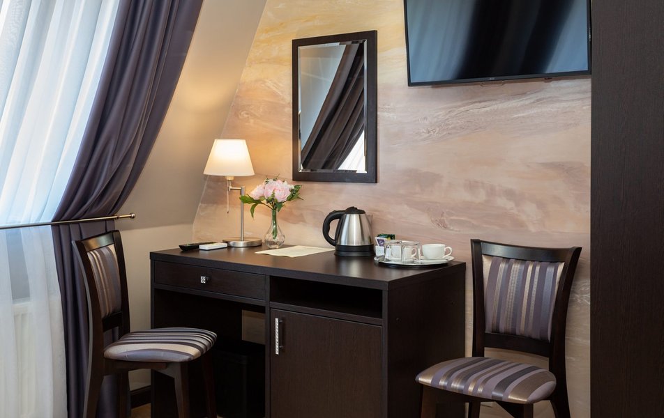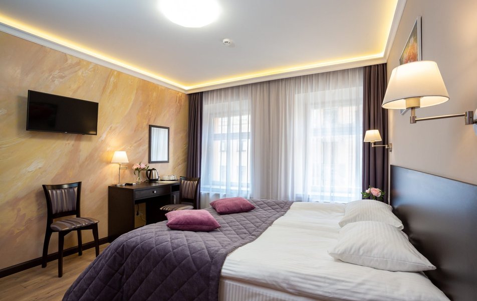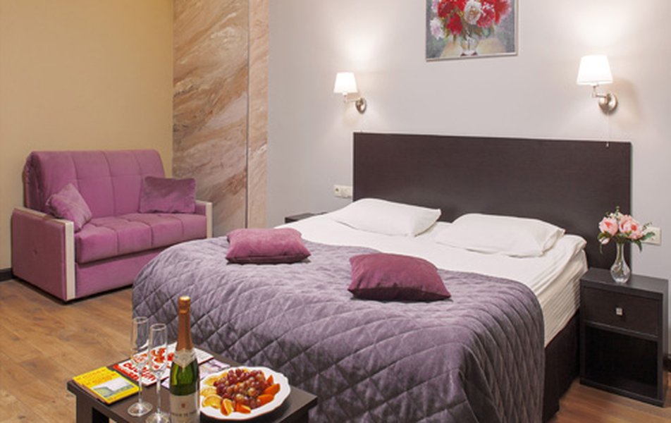 Полулюкс 2-местный Количество комнат: 1-комнатный Тип номера: Полулюкс Дополнительное место: кресло-кровать Кол-во доп. мест: 1 Кол-во основных мест: 2 Площадь (кв. м): 25 Мебель: вешалка, кресло-кровать, кровати односпальные /одна двуспальная кровать, прикроватные тумбочки, стол, стул Оборудование: кондиционер, мини-холодильник, сейф, телевизор ЖК, телефон, электрочайник Санузел: с ванной, тапочки, туалетные принадлежности, фен Сервис: Wi-Fi бесплатно, смена полотенец: по требованию, смена постельного белья: 1 раз в 3 дня, уборка номера: ежедневно, услуги внутренней телефонной связи
