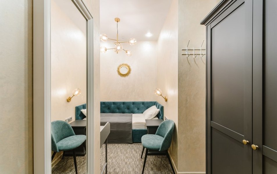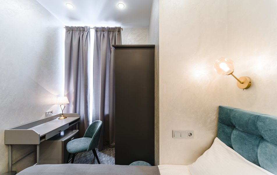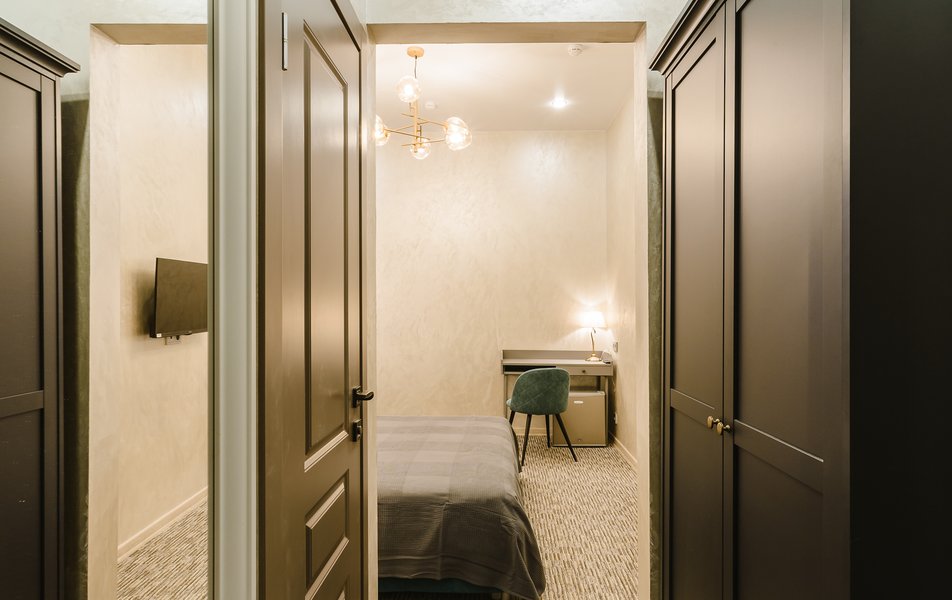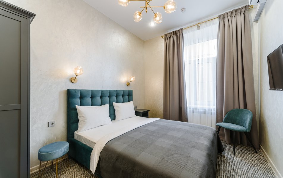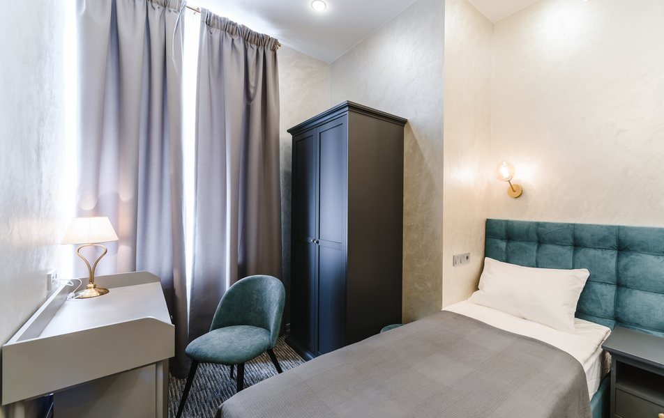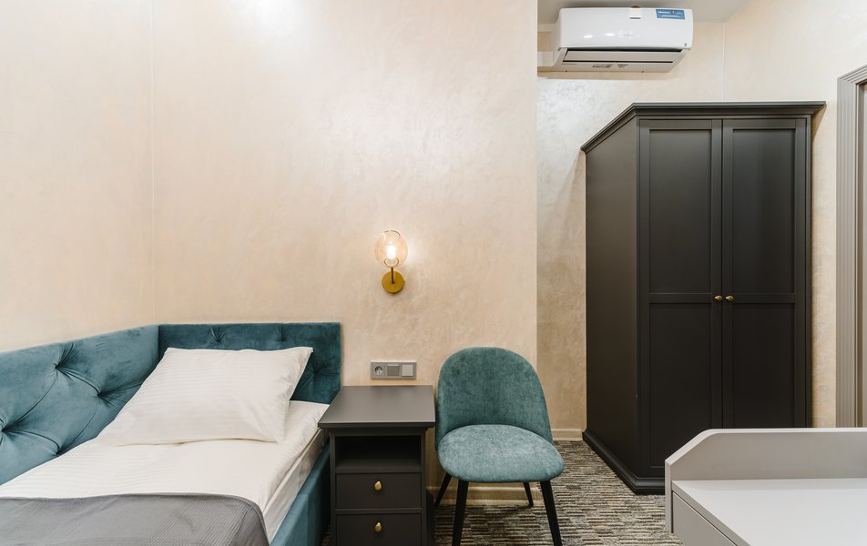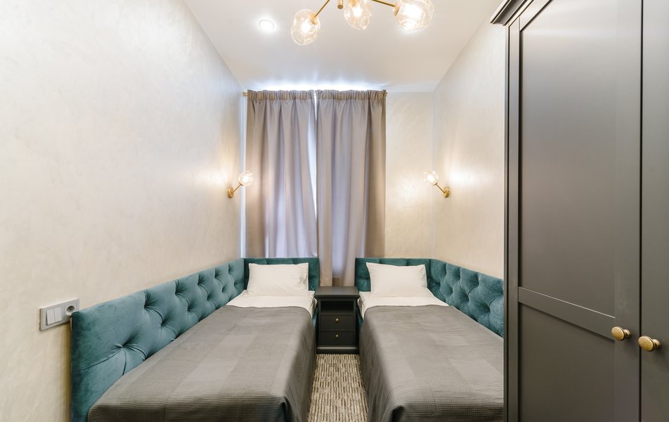 Стандартный 2-местный TWIN Количество комнат: 1-комнатный Тип номера: Стандартный Вид из номера: на город Кол-во основных мест: 2 Площадь (кв. м): 16 Мебель: вешалка, зеркало, кровати односпальные, прикроватные тумбочки, стол, стул, шкаф Оборудование: мини-холодильник, сейф, телевизор: смарт-ТВ с подключенным Кинопоиском Санузел: с душем, тапочки, туалетные принадлежности Сервис: Wi-Fi бесплатно