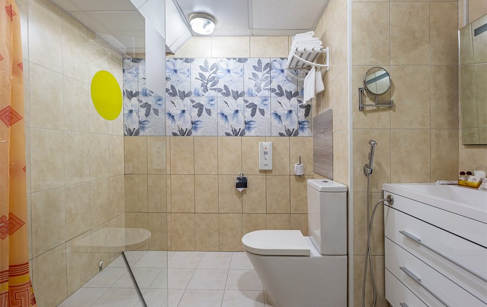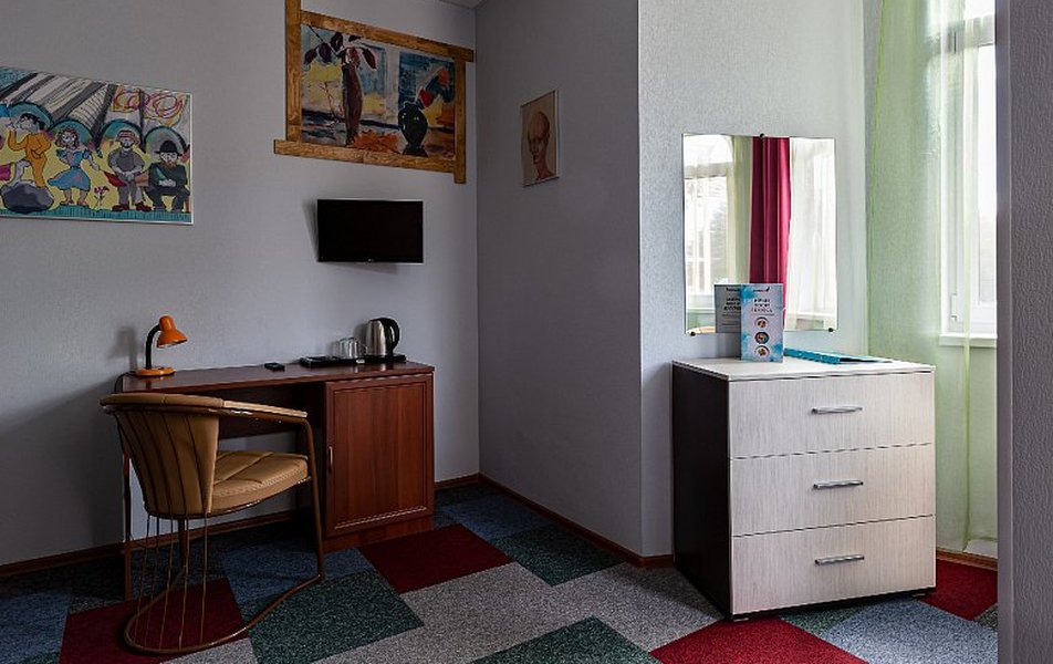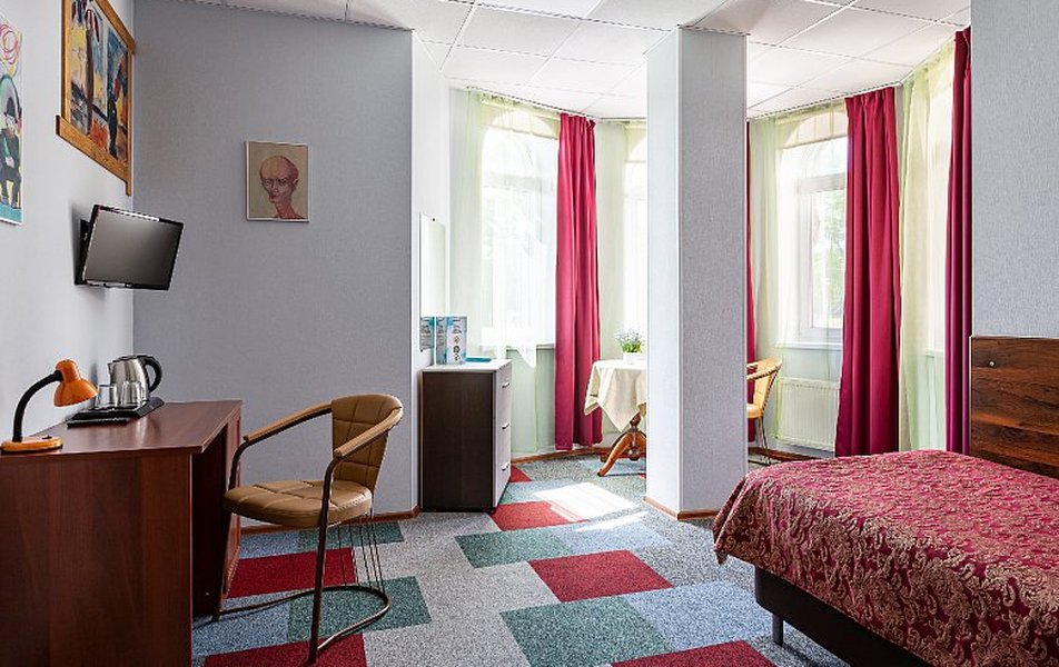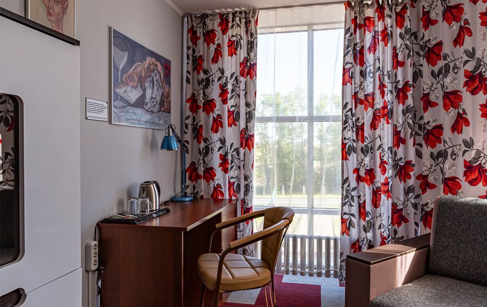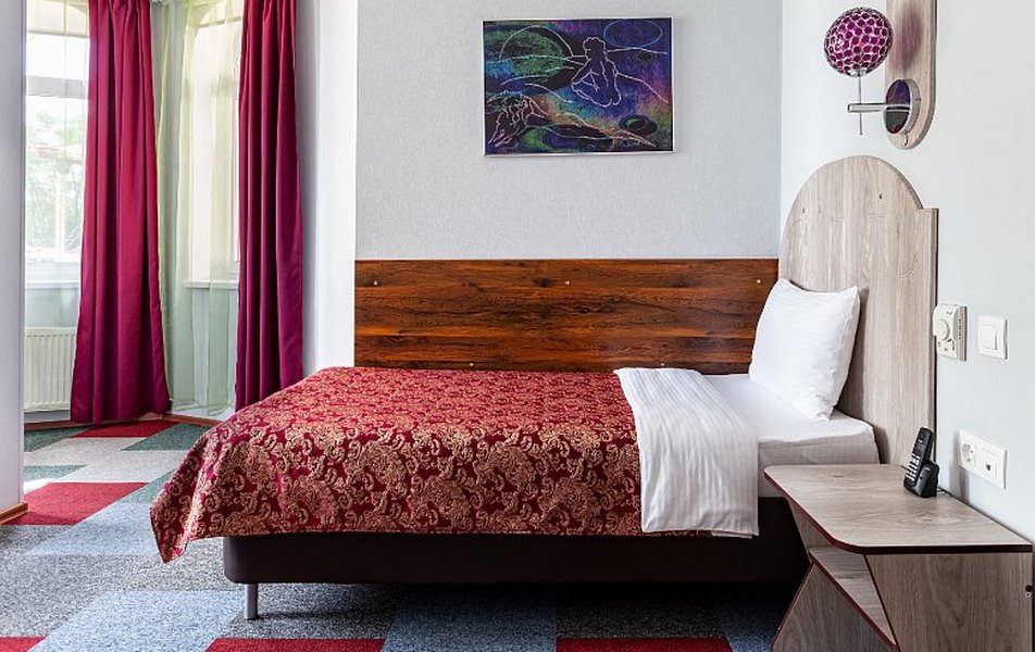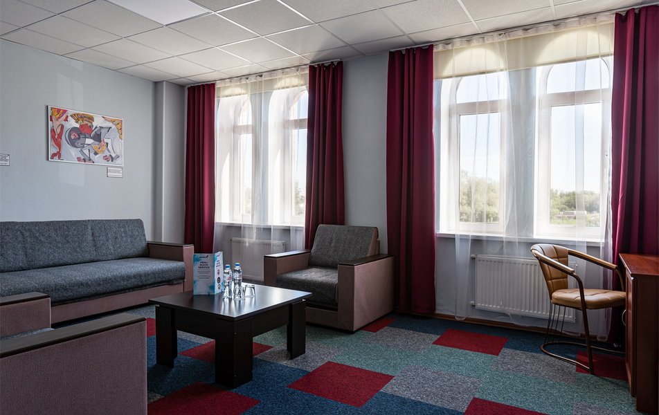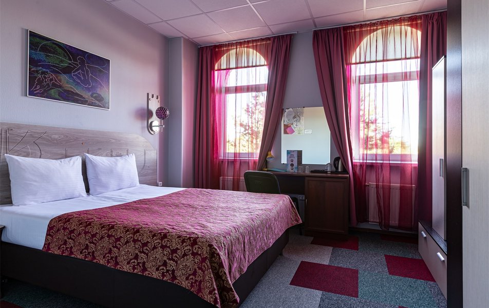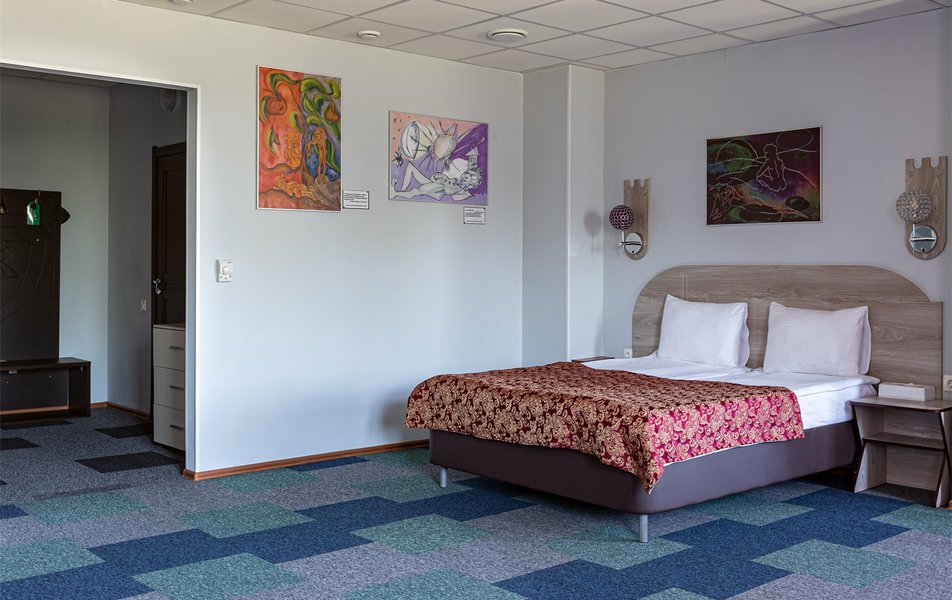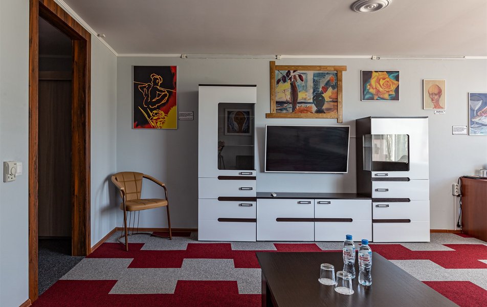 Люкс 2-местный 2-комнатный Количество комнат: 2-комнатный Тип номера: Люкс Кол-во основных мест: 2 Площадь (кв. м): 50 Мебель: зеркало, кресла, кровать двуспальная, прикроватные тумбочки, стол, стулья, шкаф Оборудование: кондиционер, мини-холодильник, сейф, телевизор, телефон, электрочайник Санузел: с душем, туалетные принадлежности, фен Сервис: Wi-Fi бесплатно, смена полотенец, смена постельного белья, уборка номера, услуги внутренней телефонной связи