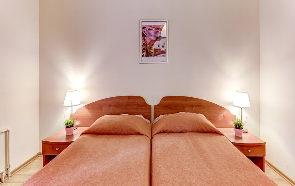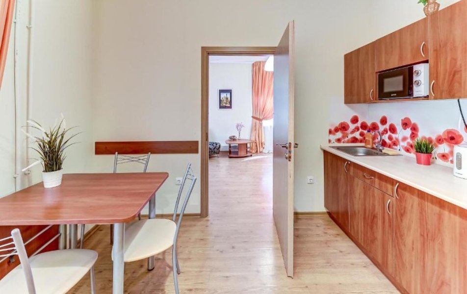 Апартаменты 2-местный 2-комнатный (с кухней) Количество комнат: 2-комнатный Тип номера: Апартаменты Кол-во основных мест: 4 Мебель: вешалка, диван раскладной, зеркало, кровати односпальные /одна двуспальная кровать, прикроватные тумбочки, стол, стулья, шкаф Оборудование: микроволновая печь, мини-холодильник, набор посуды, телевизор, электрочайник Санузел: с душем, туалетные принадлежности, фен Сервис: Wi-Fi бесплатно, смена полотенец, смена постельного белья, уборка номера