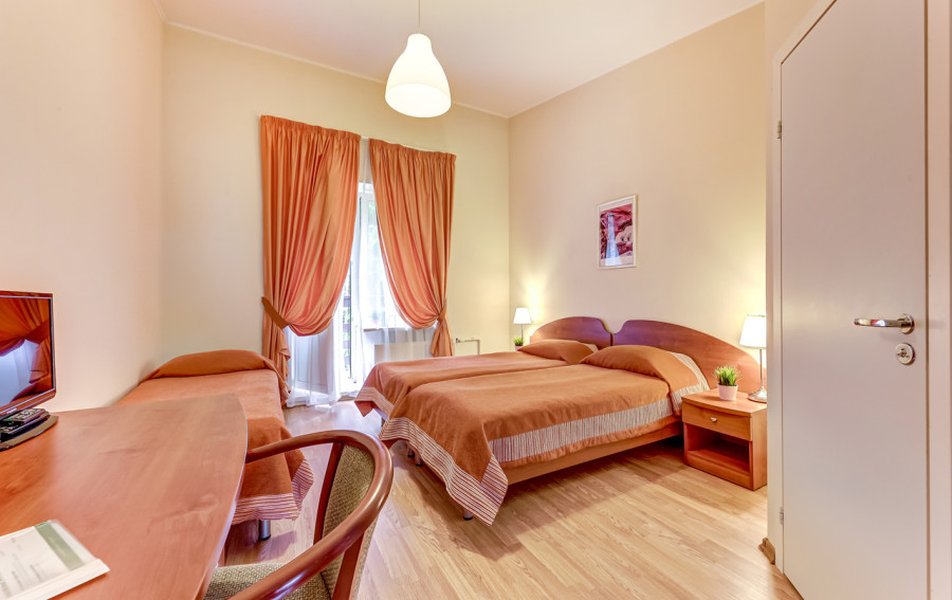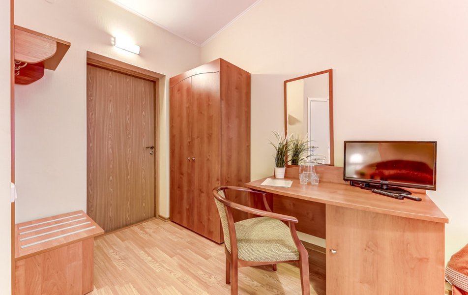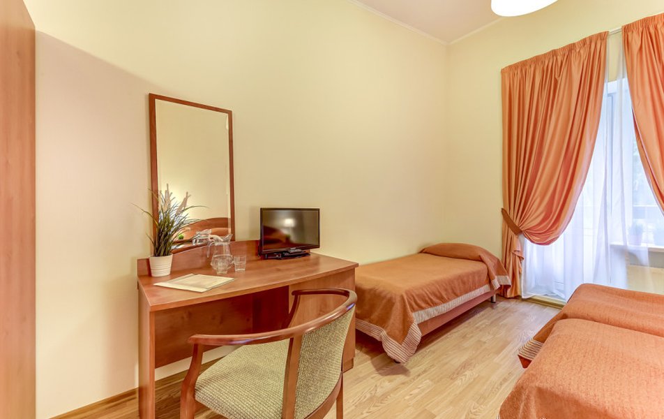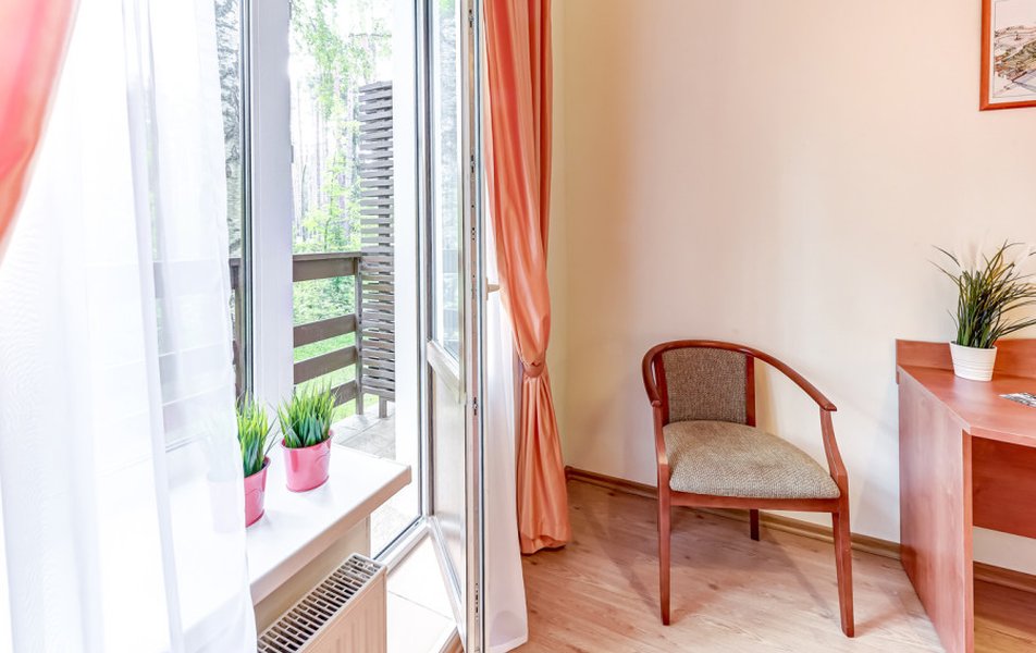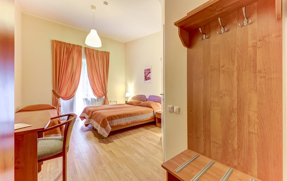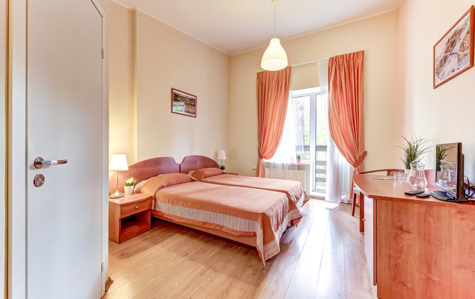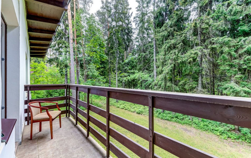 Мы гостили в отеле в канун Нового года с 31.12.2024 на 1.01.2025. Решено было провести Новогоднюю ночь в красивом месте вдали от толп людей, шума и со снегом. Если в городе снега уже не было, то за городом снега было предостаточно. Мы выбрали Зеленогорск. Раньше Зеленогорск назывался Терийоки (Смоляная река) и принадлежал Швеции (до 1721 года), затем Российской Империи (до 1918 года), Финляндии (до 1940 года) и снова России — с 1940 года. Отель расположен в лесном массиве, спрятавшийся среди вековых елей и сосен. Но и зимой здесь хорошо и красиво. Чистый морозный воздух. Тишина, щебет птичек. Территория не большая, ухоженная. Есть своя парковка. Добраться до отеля в Зеленогорске можно на электричке с Финляндского вокзала, а оттуда на автобусах 211 или 680 до остановки Приморское шоссе 512. Второй вариант, это на автобусах, следующих в Зеленогорск из Санкт-Петербурга. Пока шли к отелю, по дороге мы рассматривали дачные домики построенные в стиле Северного модерна. На ресепшене нас встретил приятный персонал. Отель уже немного староват, местами надо бы и обновить. Но, в целом достаточно чисто и скромно. В оплату отеля ничего кроме ночи не входит. Ну, например, в других отелях предоставляется утром час в бассейне или завтрак или вечером бильярд и т.д. Свои 3 звезды оправдывает, но не выше. При бронировании я обратила внимание, что я выкупала последний номер. Но, как оказалось при полном заселении мы не заметили толп шарахающихся отдыхающих. Ощущение что кроме нас никого нет, не покидало нас и в новогоднюю ночь и на следующий день. Из недостатков: наш номер был на троих, но стаканов было только 2. В описании номера было сказано о чайнике, в номере его не оказалось. Так же не было и чайных кружек. Мебель старенькая, но состояние хорошее. В пульте от телевизора стояли старые батарейки и он не работал. Телевизор совсем маленький и стоит на столе. Конечно лучше когда он висит на стене. Так удобнее. В номере для троих у кроватей стояло только 2 тумбочки, а кроватей 3. Третьему человеку вещи уже положить было некуда. Есть балкон, наш номер располагался на третьем этаже. Вид с балкона на парковую территорию отеля. На ресепшене сразу же предоставили батарейки, нашли где-то чайник и недостающие стаканы. Микроволновой печки нет. Но это и понятно. Сюда люди приезжают худеть. Соответственно здесь спартанские условия в отношении комфорта для покушать. Предоставляется комплект полотенец. Одно большое банное и маленькое для лица. В ванной комнате висело одно полотенце. Мы так поняли это для ног, когда выходишь из душевой кабинки. Санузел совмещенный. Тапочек нет. Везите свои. Итог: Летом приедем опять подышать сосновым, морским воздухом. В тишину. Отель рекомендую. Да, старенький. Но это и не 5 звезд. Тихо, чисто, без претензий, скромно. Для людей старшего возраста прекрасно. И для тех кто ищет уединения, успокоить нервы, расслабиться от суеты и жизненной гонки больше чем фото для инстаграм.