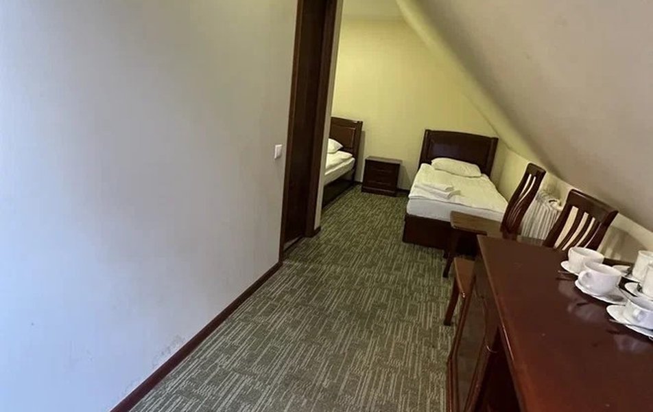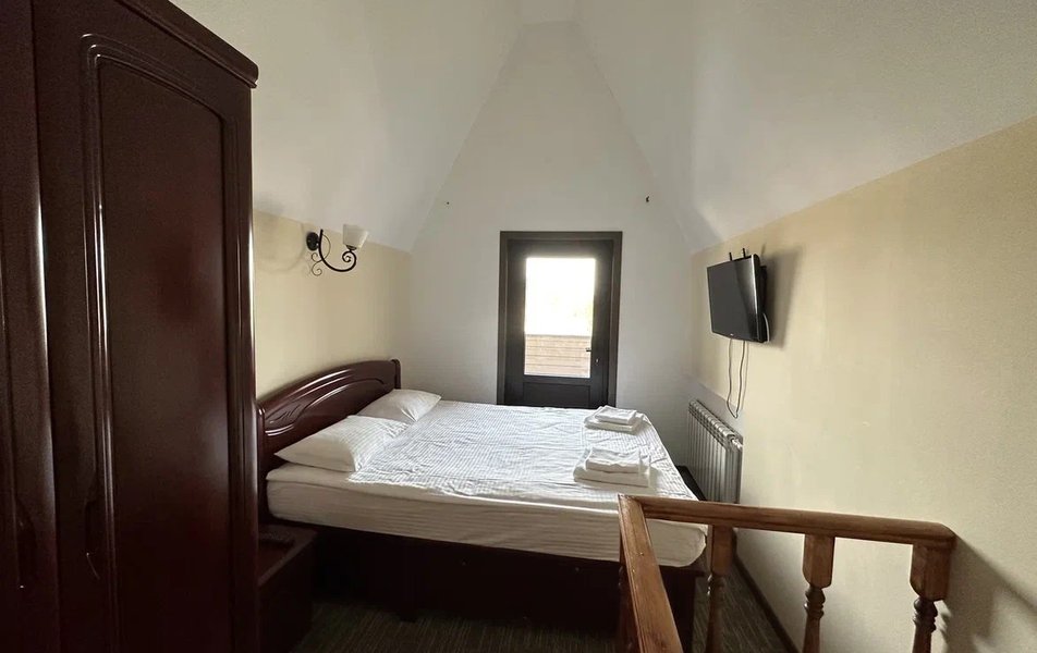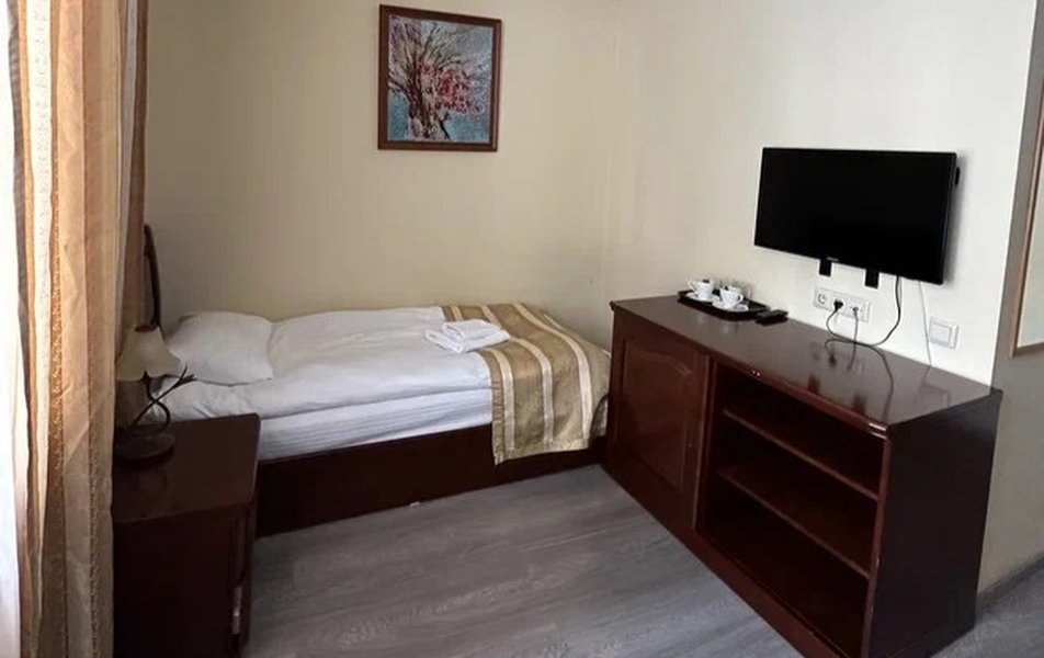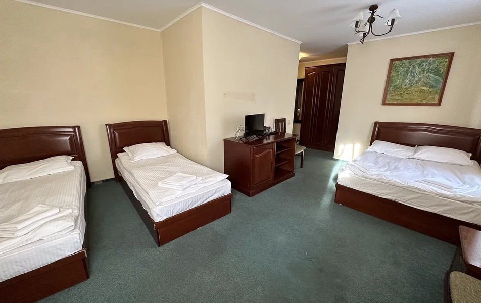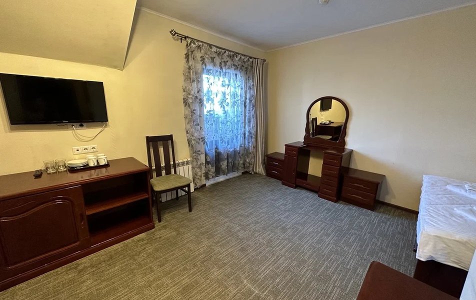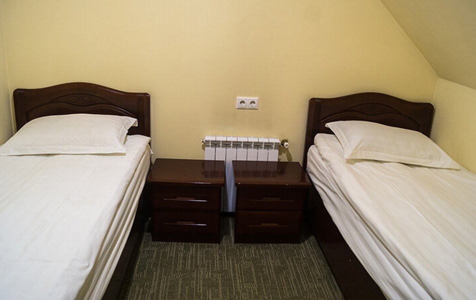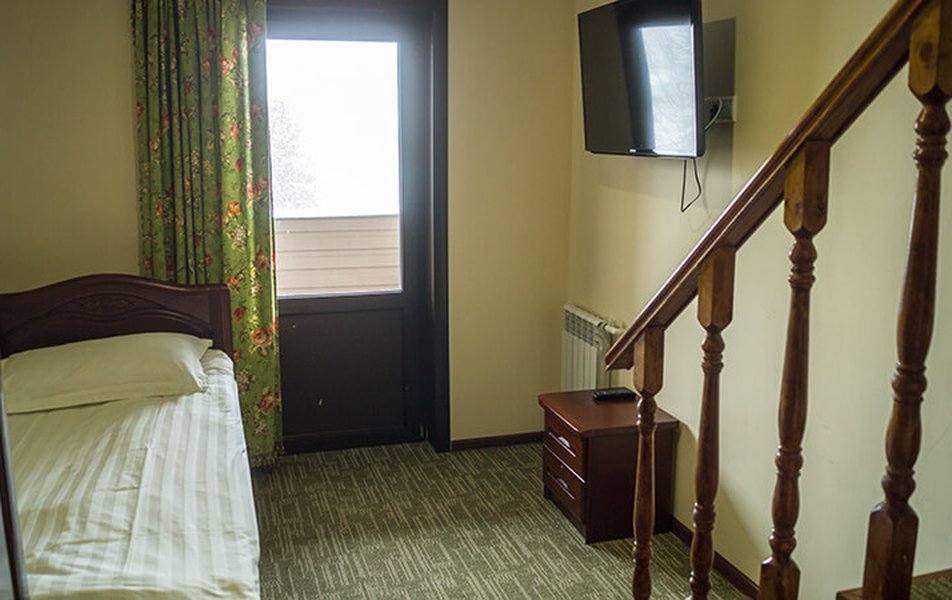 Холодные комнаты, ледяные батареи. Подходили вежливо два раза, уточняли. Даже мастер приходил в номер, крутил ручки. Но только когда в третий раз рявкнули, батареи заработали. Мебель «привет 80-е», разваливается под вами. Заставленная комната всяким хламом, а посидеть реально негде. В комнате на 4-х человек один стул. Сантехника старая, раковины засорены. Сама раковина была грязной, в чём-то липком. Наряду с теплом, отсутствовала горячая вода. Завтрак: успел до 8.30, поел. Позже - нет ни еды, ни чашек, ни тарелок. Хотя заявлено с 8 до 11 утра. Подразумевался чайник в номере, по приезду его не оказалось, запретили. Половина лампочек в комнате не горит. На четверых один ключ от номере. Крутитесь как хотите. Замок на двери расшатан, еле закрывается. Видимо не первый раз его взламывают. Уборка по требованию. По всему отелю wifi, работал прилично. Есть в местном ресторане не советую. Придя вечером, сами бегали за официантом. Вынес меню, спрашиваем «все есть?», ответ «да! Выбирайте». В итоге половины из меню нет. Вместо курицы за 420 руб с дымком, вынесли курицу с душком. Неаппетитно, жирно, невкусно. С учетом наличия других прекрасных отелей и на горе, жить в гринберге не советую.