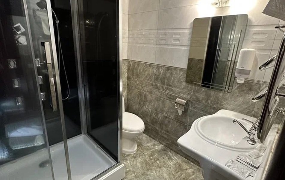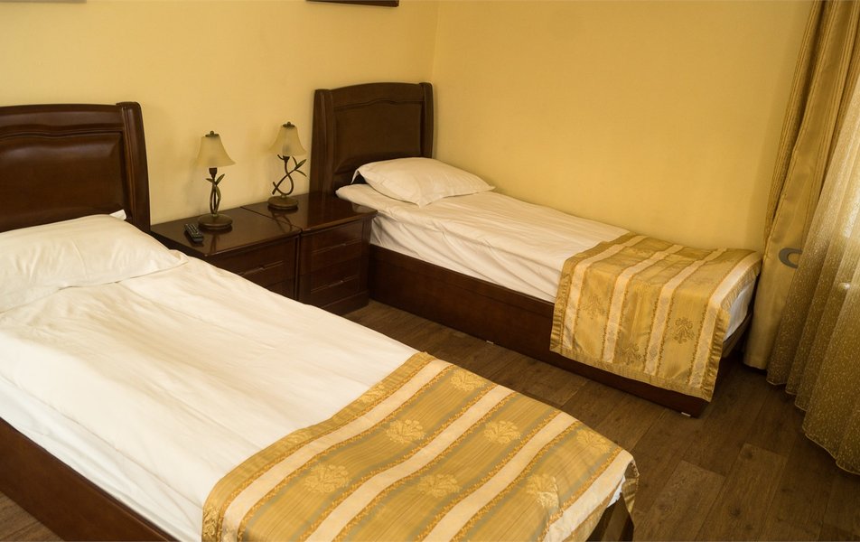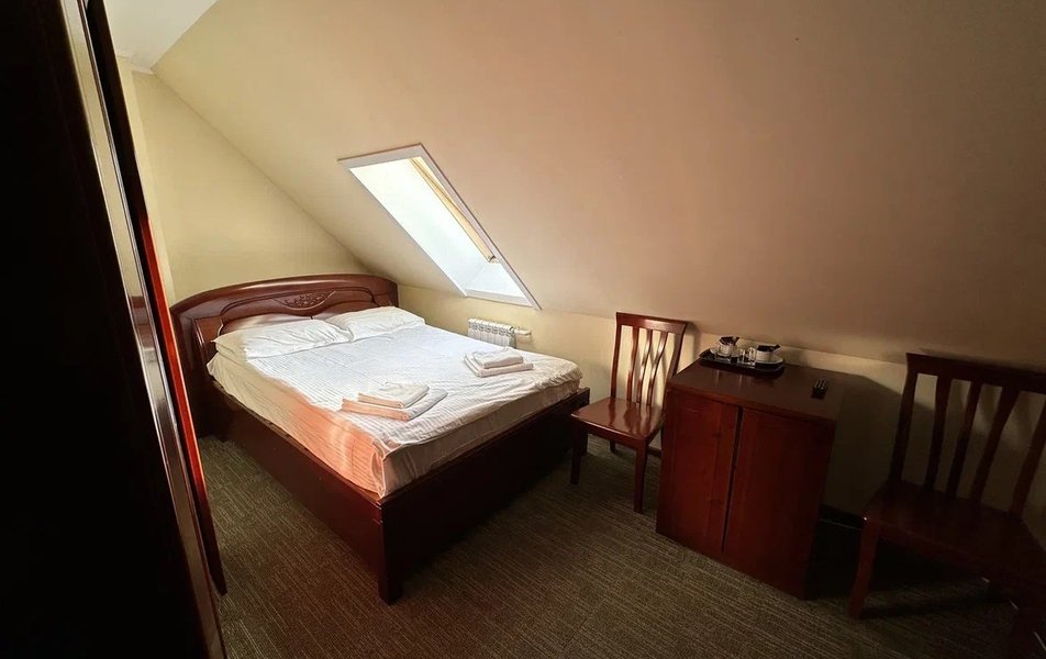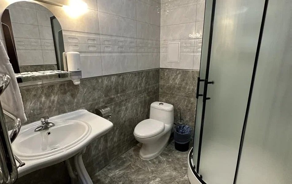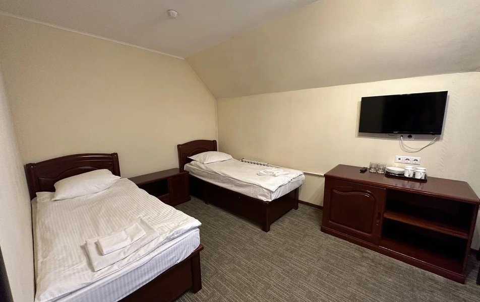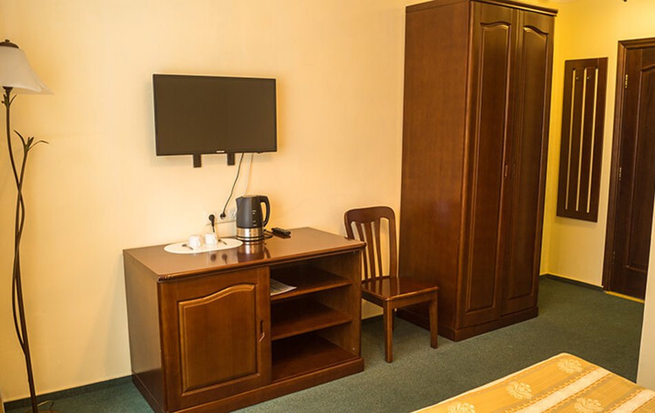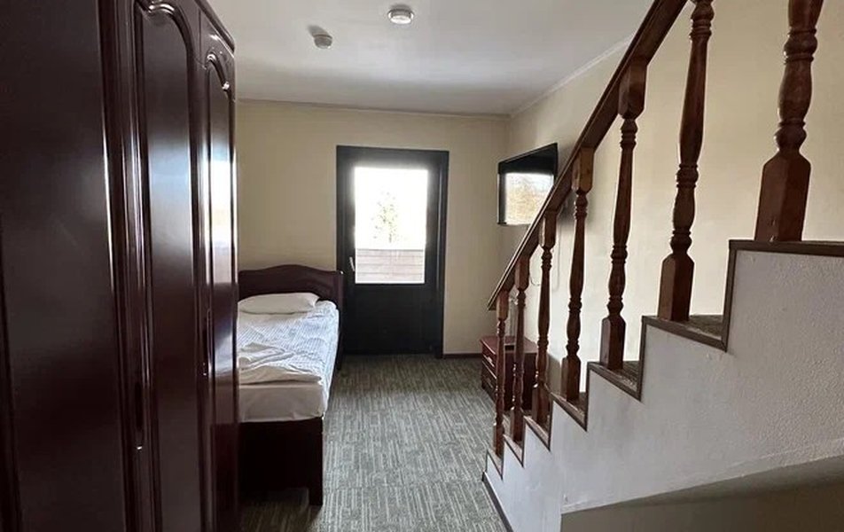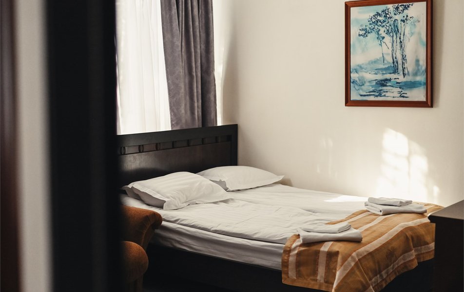 Холодные комнаты, ледяные батареи. Подходили вежливо два раза, уточняли. Даже мастер приходил в номер, крутил ручки. Но только когда в третий раз рявкнули, батареи заработали. Мебель «привет 80-е», разваливается под вами. Заставленная комната всяким хламом, а посидеть реально негде. В комнате на 4-х человек один стул. Сантехника старая, раковины засорены. Сама раковина была грязной, в чём-то липком. Наряду с теплом, отсутствовала горячая вода. Завтрак: успел до 8.30, поел. Позже - нет ни еды, ни чашек, ни тарелок. Хотя заявлено с 8 до 11 утра. Подразумевался чайник в номере, по приезду его не оказалось, запретили. Половина лампочек в комнате не горит. На четверых один ключ от номере. Крутитесь как хотите. Замок на двери расшатан, еле закрывается. Видимо не первый раз его взламывают. Уборка по требованию. По всему отелю wifi, работал прилично. Есть в местном ресторане не советую. Придя вечером, сами бегали за официантом. Вынес меню, спрашиваем «все есть?», ответ «да! Выбирайте». В итоге половины из меню нет. Вместо курицы за 420 руб с дымком, вынесли курицу с душком. Неаппетитно, жирно, невкусно. С учетом наличия других прекрасных отелей и на горе, жить в гринберге не советую.