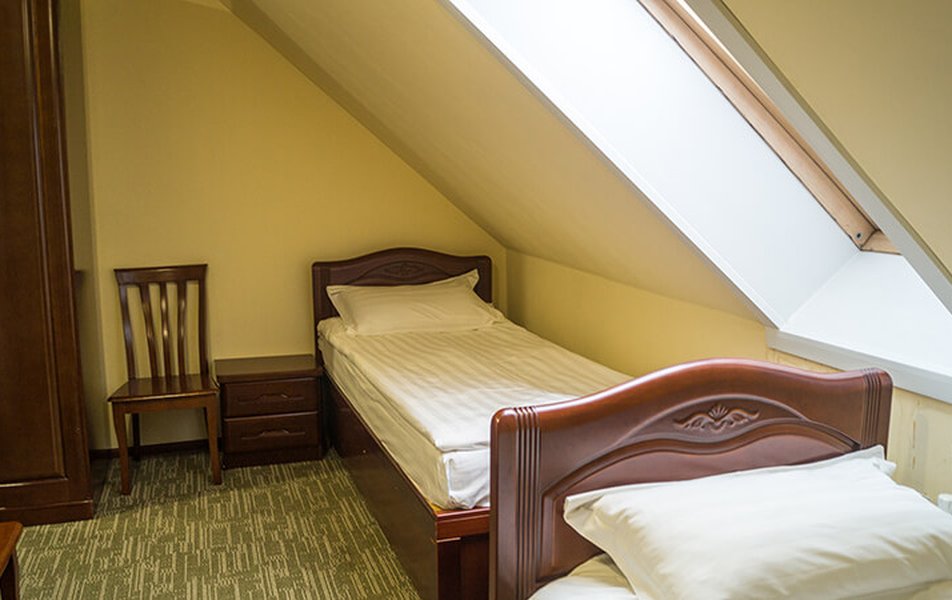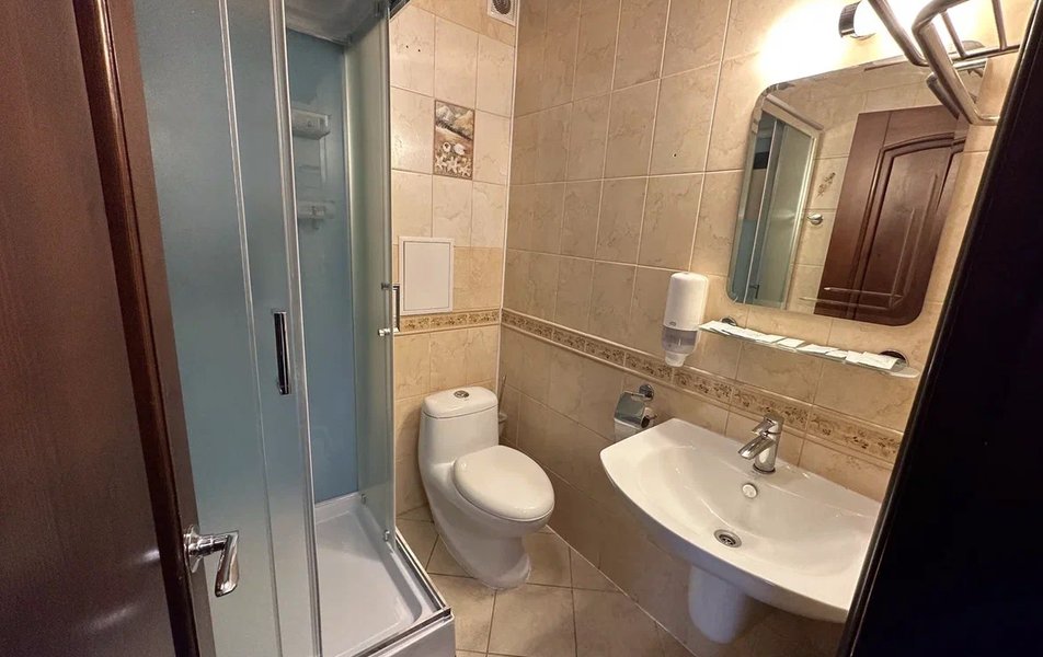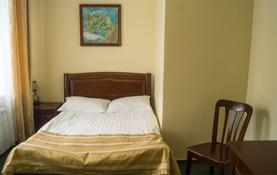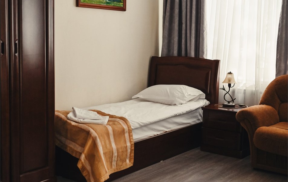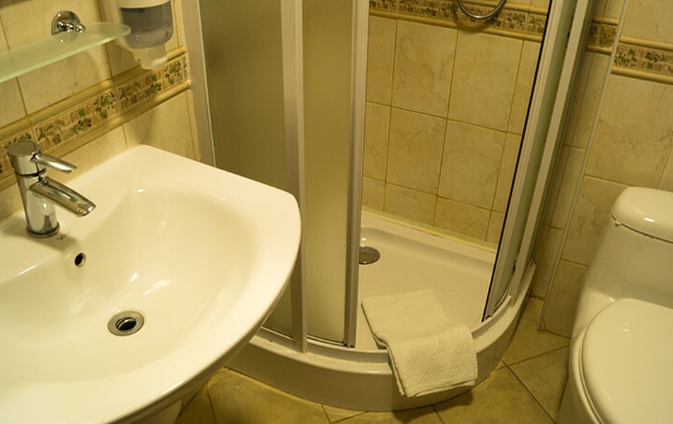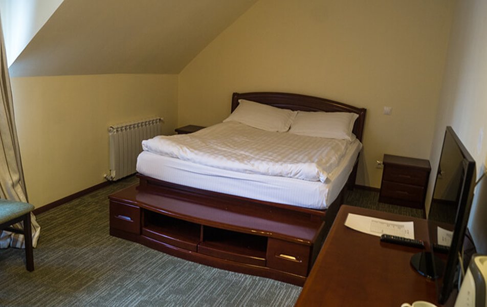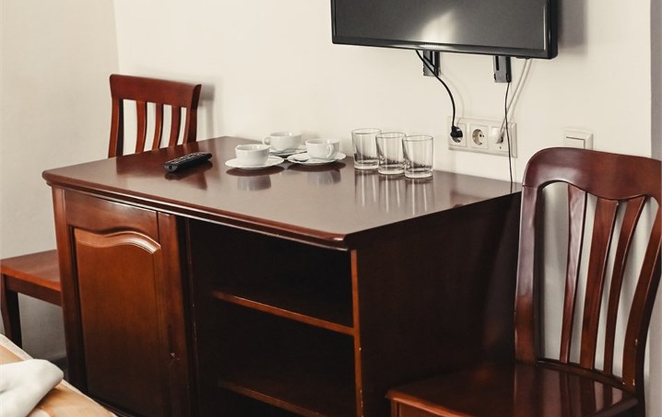 Холодные комнаты, ледяные батареи. Подходили вежливо два раза, уточняли. Даже мастер приходил в номер, крутил ручки. Но только когда в третий раз рявкнули, батареи заработали. Мебель «привет 80-е», разваливается под вами. Заставленная комната всяким хламом, а посидеть реально негде. В комнате на 4-х человек один стул. Сантехника старая, раковины засорены. Сама раковина была грязной, в чём-то липком. Наряду с теплом, отсутствовала горячая вода. Завтрак: успел до 8.30, поел. Позже - нет ни еды, ни чашек, ни тарелок. Хотя заявлено с 8 до 11 утра. Подразумевался чайник в номере, по приезду его не оказалось, запретили. Половина лампочек в комнате не горит. На четверых один ключ от номере. Крутитесь как хотите. Замок на двери расшатан, еле закрывается. Видимо не первый раз его взламывают. Уборка по требованию. По всему отелю wifi, работал прилично. Есть в местном ресторане не советую. Придя вечером, сами бегали за официантом. Вынес меню, спрашиваем «все есть?», ответ «да! Выбирайте». В итоге половины из меню нет. Вместо курицы за 420 руб с дымком, вынесли курицу с душком. Неаппетитно, жирно, невкусно. С учетом наличия других прекрасных отелей и на горе, жить в гринберге не советую.