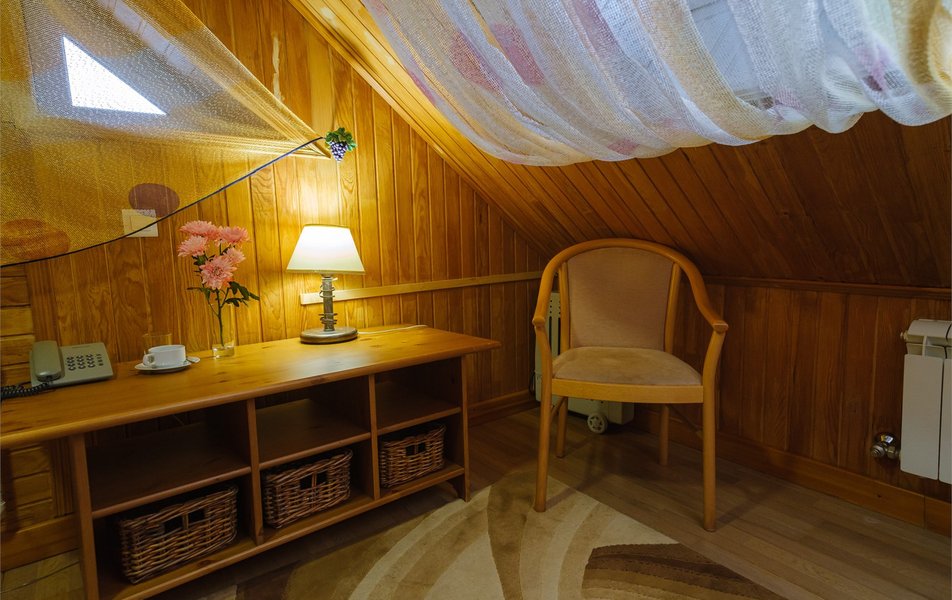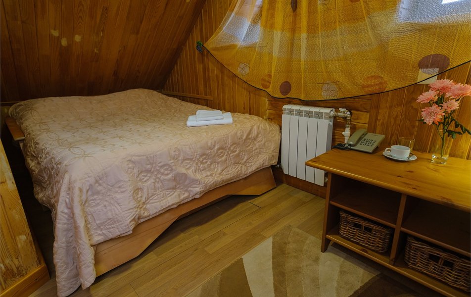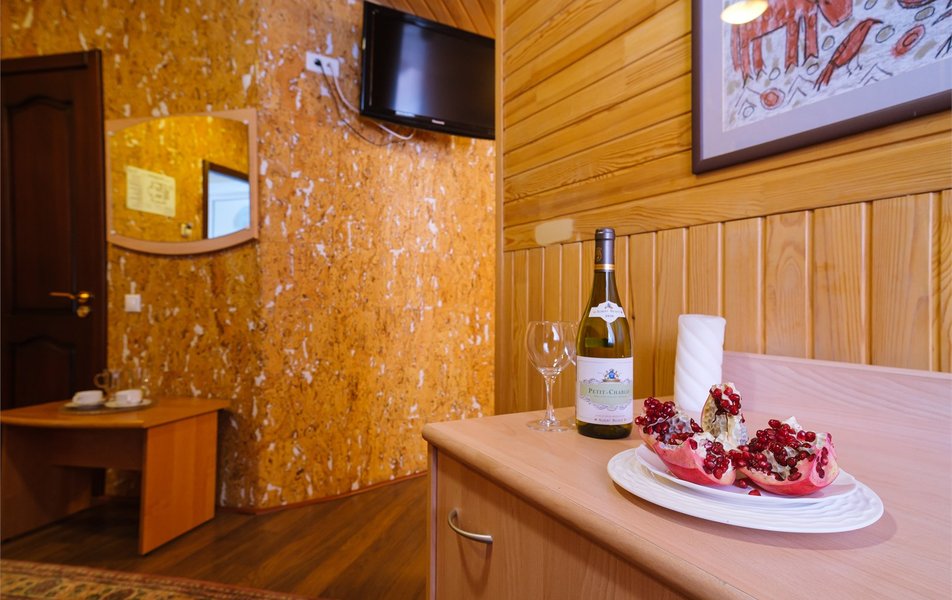 Жили в номере Флигель- отвратительный номер. Не ловит Вай Фай. Нет чайника или кулера. В завтраки и ужины тоже не входят напитки. Сам номер темный, потолок -это крыша, так что простор не ощущается. Не стоит своих денег. Администратор убеждает, что все идеально