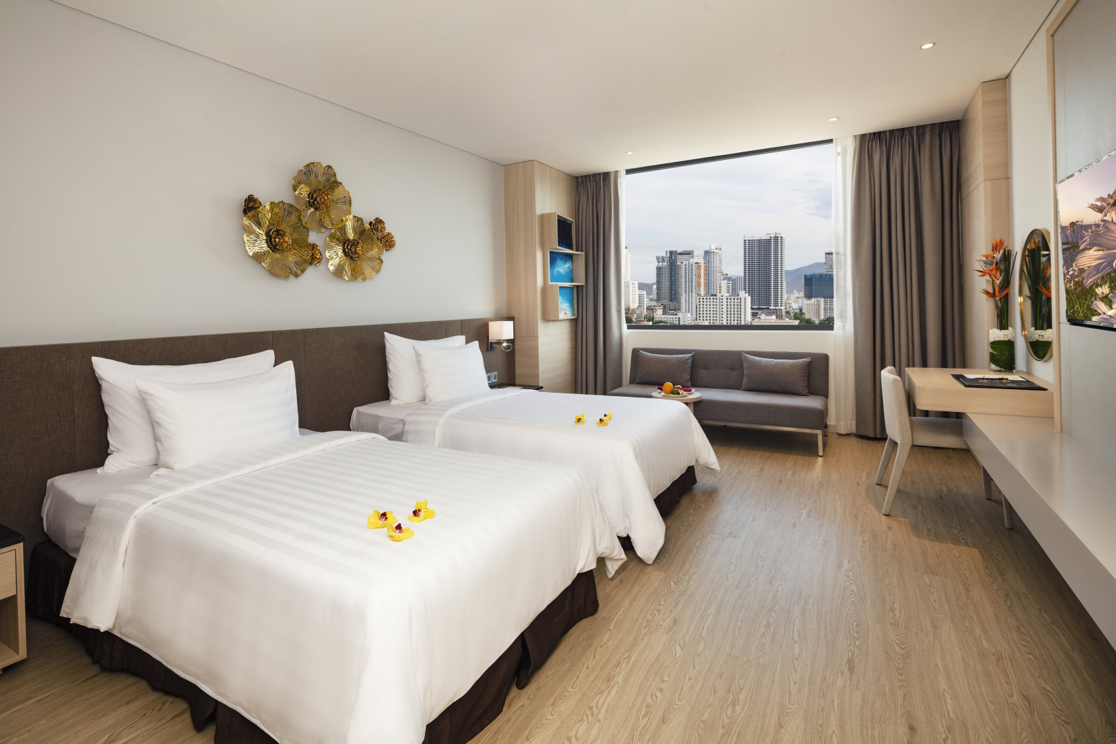 Однокомнатный номер с двуспальной кроватью/2 односпальными кроватями, ванной комнатой с душем или ванной. Укомплектован беспроводным интернетом, кондиционером, телевизором, сейфом, телефоном, мини-баром, феном, гостиничной косметикой, банными халатами и тапочками. Из номера открывается вид на город.
