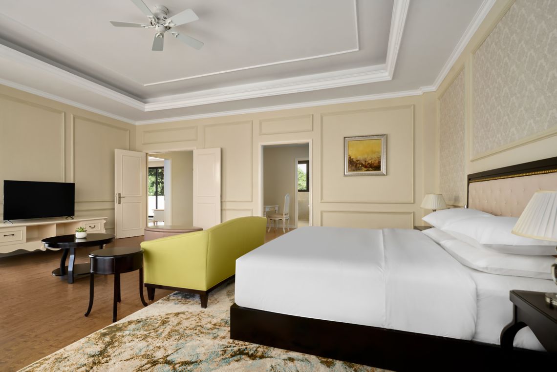 Однокомнатный номер с балконом и видом на сад. В комплектации двуспальная кровать king-size, кондиционер, телевизор, телефон, мини-бар, сейф. Ванная комната с душем, ванной, предоставляется фен, набор гостиничной косметики, халаты и тапочки.